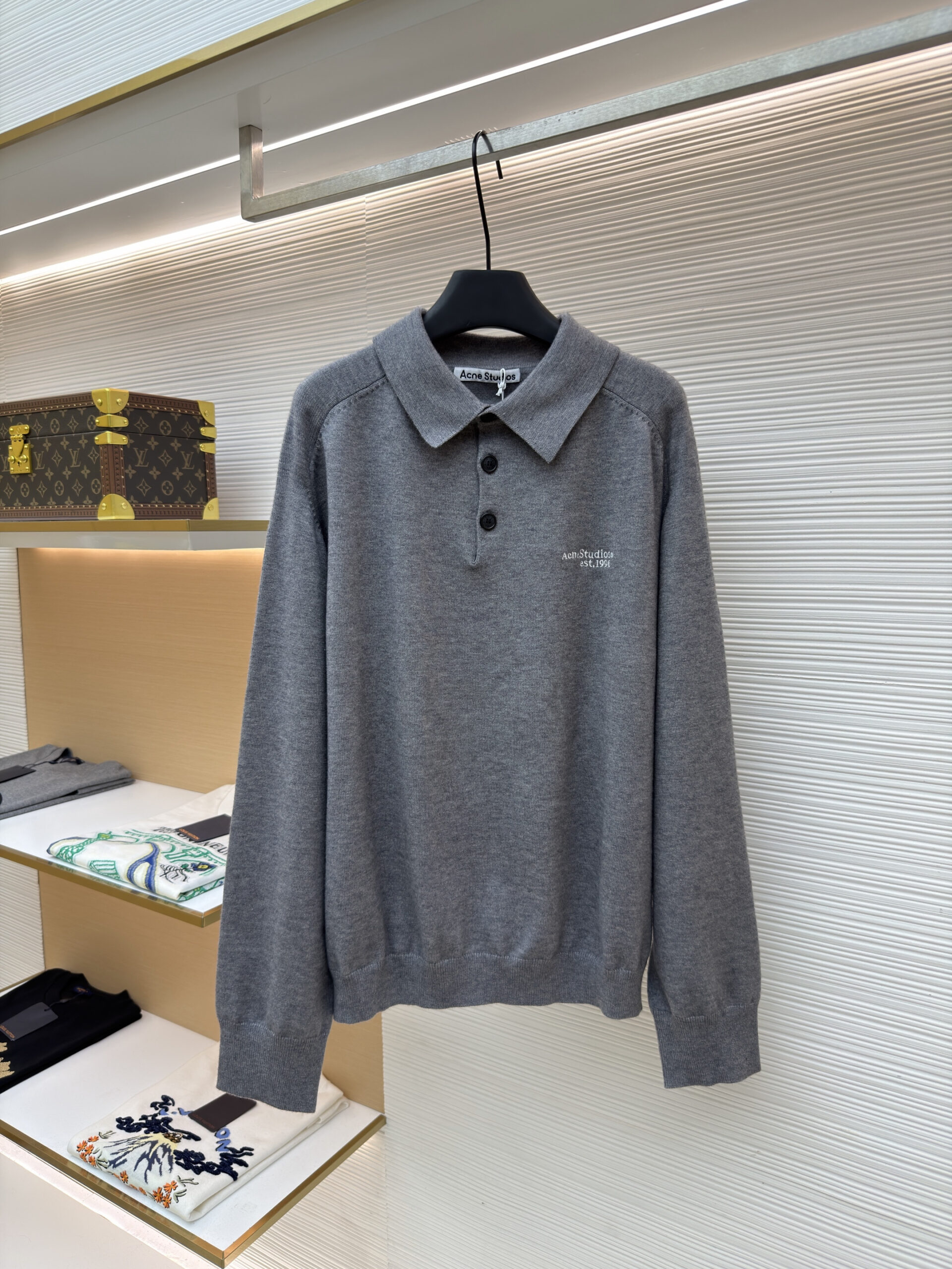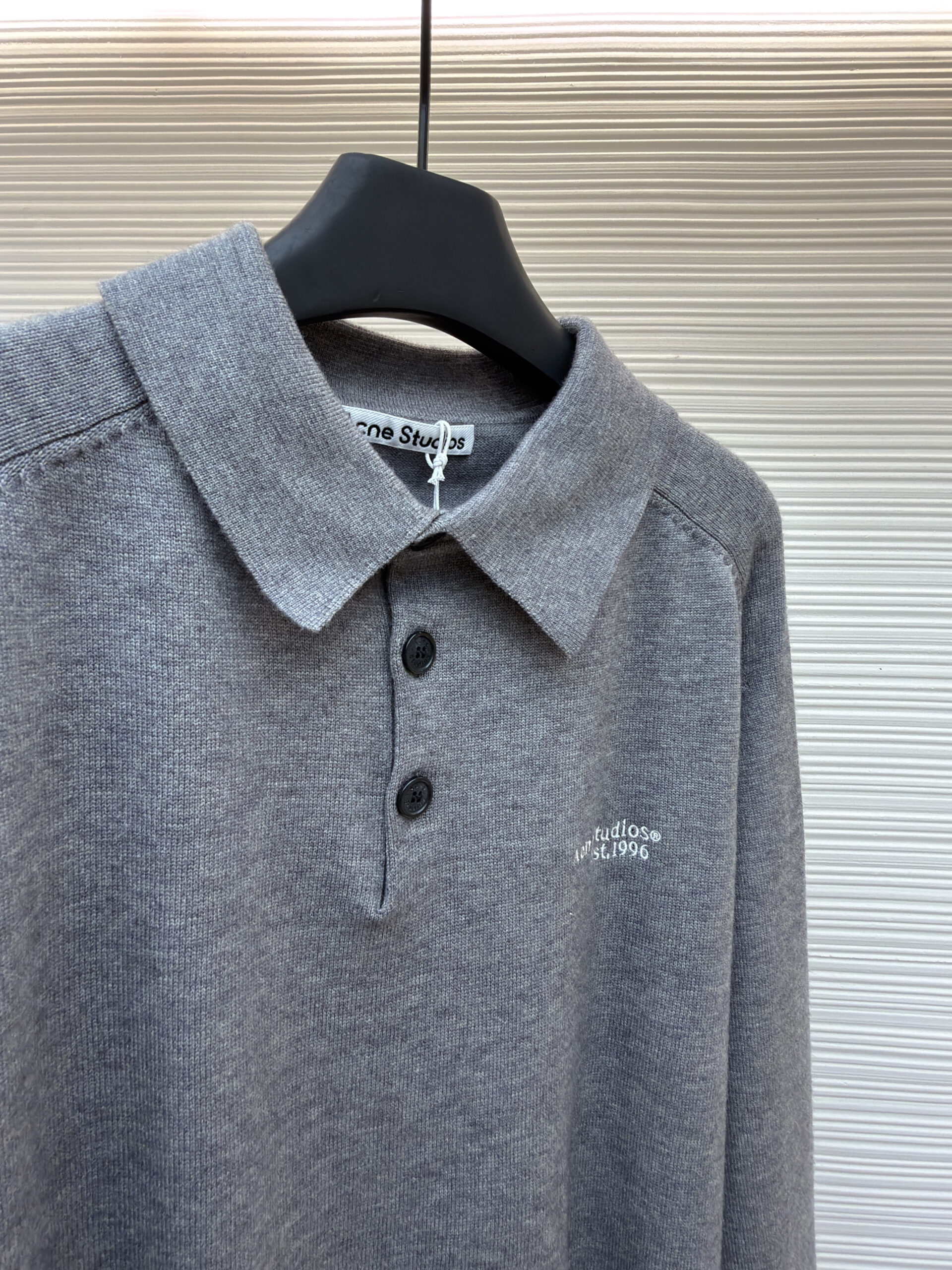 Acne Studios Grey Knit Polo is a quintessential example of contemporary Scandinavian design, blending the formal structure of a polo with the soft comfort of premium knitwear. This piece is crafted from a high-quality wool-blend yarn that provides exceptional warmth while remaining lightweight enough for year-round layering. The heather grey colorway offers a sophisticated, neutral palette that complements a wide range of styles, from minimalist urban looks to more traditional ensembles. Furthermore, the chest features a subtle, tonal embroidered logo that serves as a hallmark of understated luxury and refined taste.