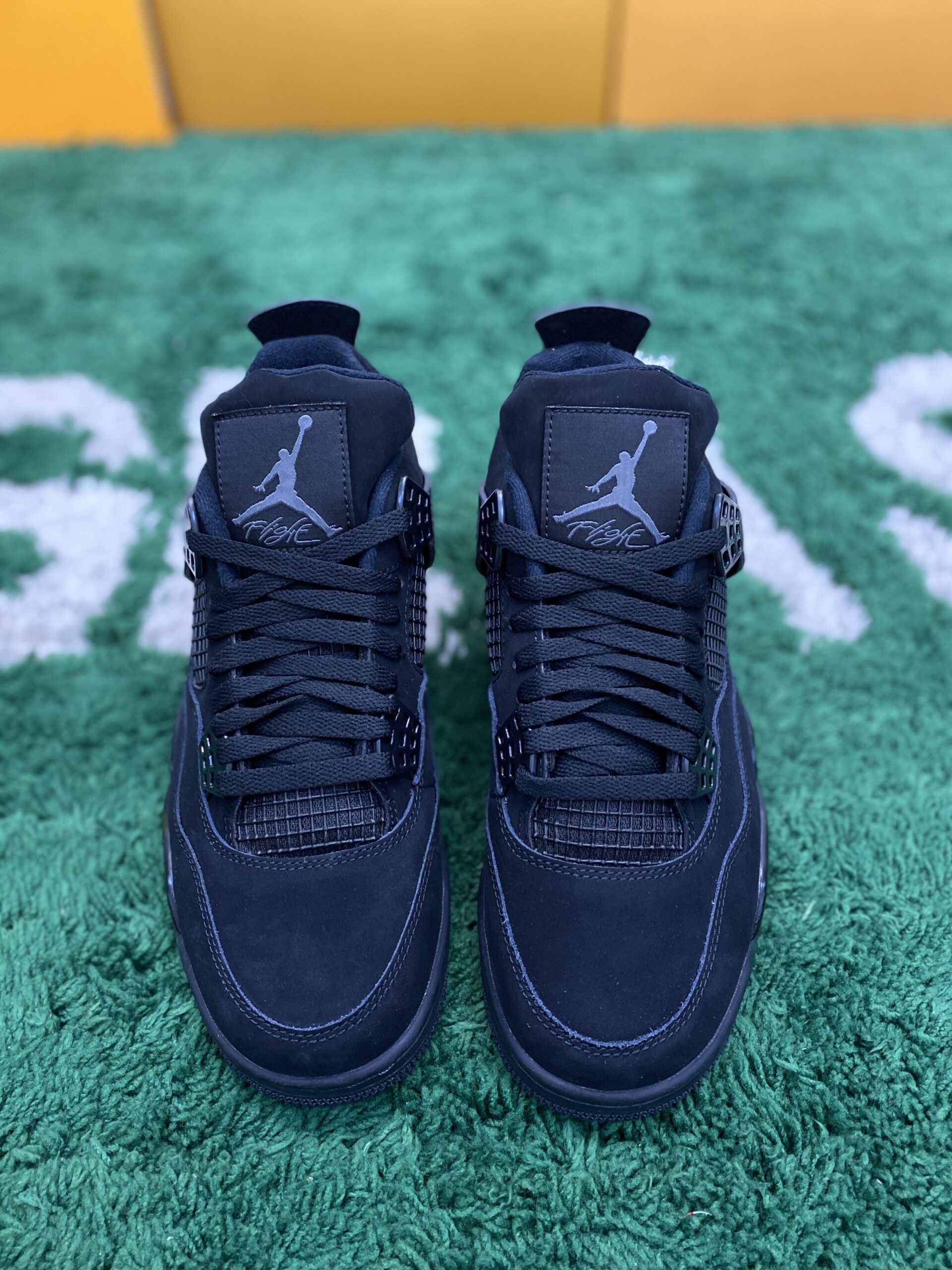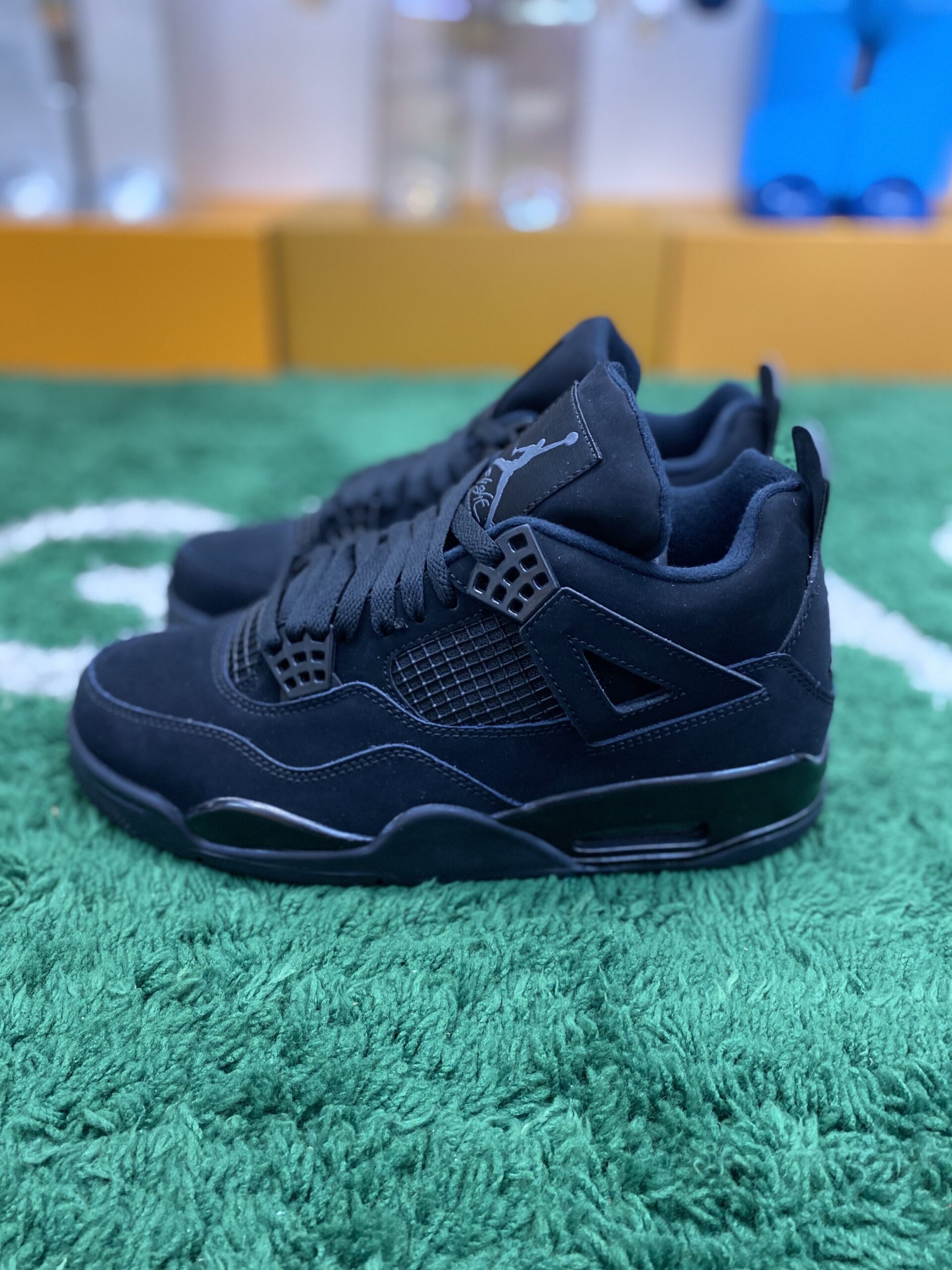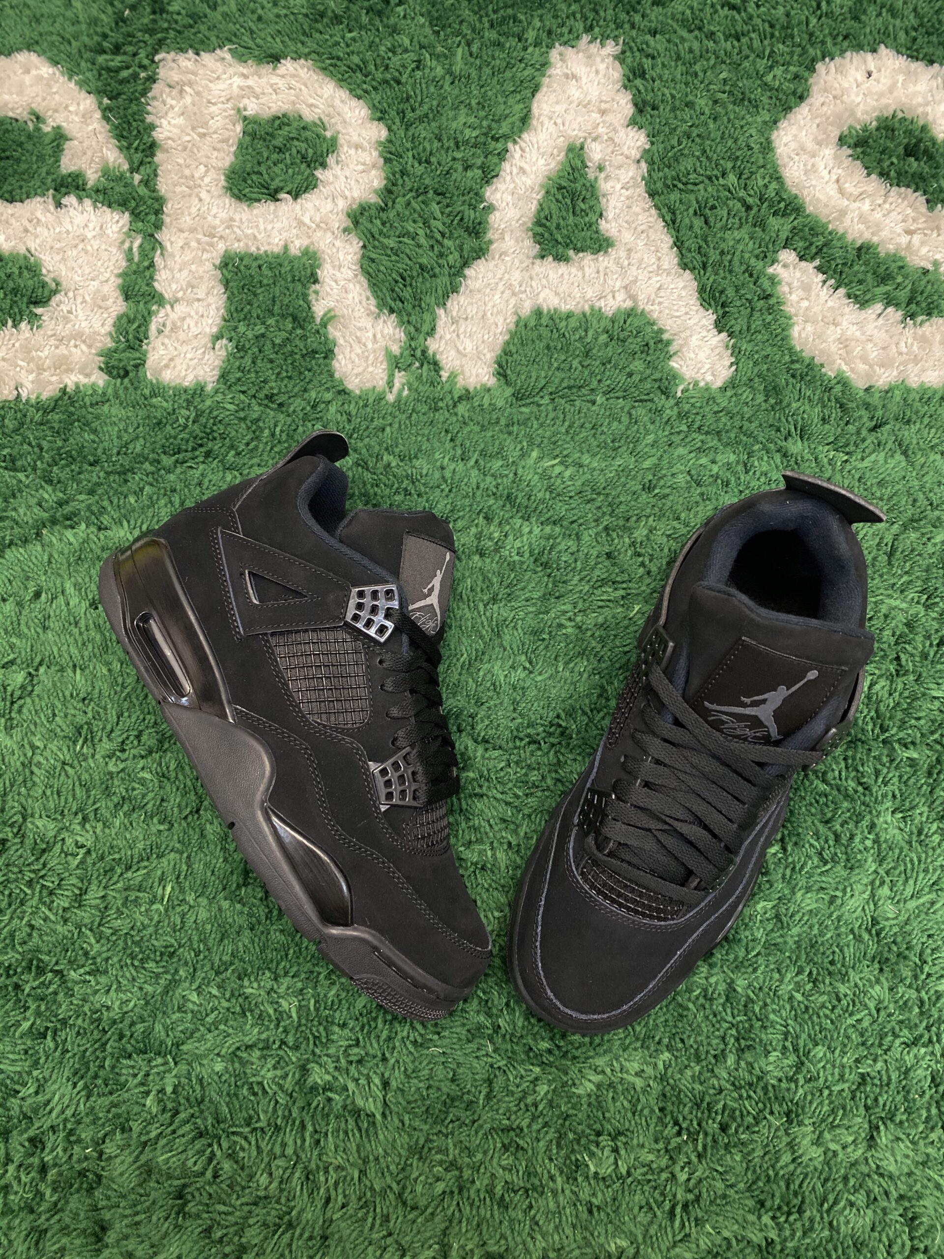 Air Jordan 4 Retro “Black Cat” Triple Black is a legendary silhouette that draws its name and inspiration from one of Michael Jordan’s many nicknames, highlighting a sleek and predatory aesthetic. This specific model is a masterclass in monochrome design, featuring a premium matte black nubuck upper that provides a rich, velvety texture across the entire shoe. The all-black theme is strictly maintained throughout the design, including the plastic “wings,” the iconic mesh netting on the side panels and tongue, and the eyelets. A glossy Light Graphite Jumpman logo on the tongue tag and a tonal black Jumpman on the heel serve as the only subtle branding hits, keeping the focus on the silhouette’s stealthy profile.