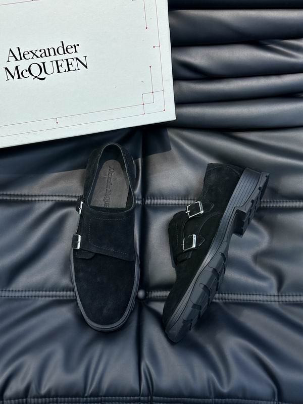 Alexander McQueen Black Suede Double Monk Strap Shoes