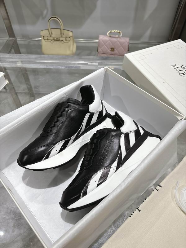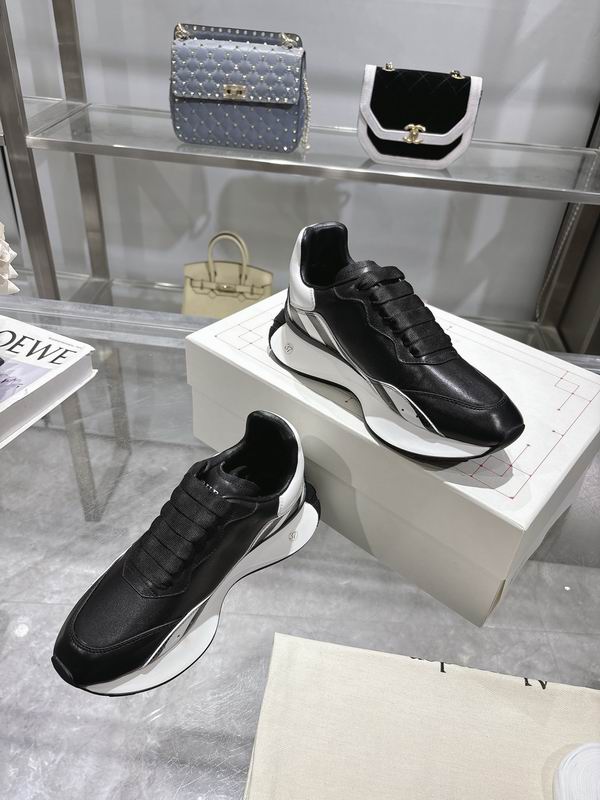 Alexander McQueen White/Black.: This iteration features a smooth, premium white leather upper that provides a clean and versatile base for any modern wardrobe. The standout contrast comes from the deep black leather heel tab, which serves as a striking focal point against the crisp white body.