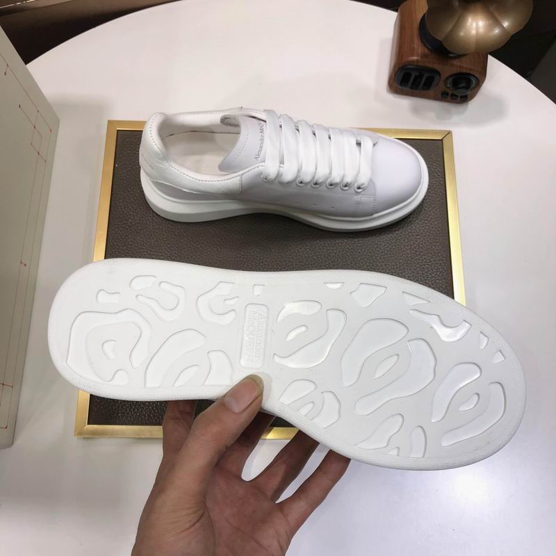 The sneaker’s most recognizable feature is the signature oversized white rubber midsole, which provides significant elevation and a bold, chunky profile. Functional details include precision perforated air holes on the sides for breathability and a padded collar for a comfortable, snug fit. The interior is lined with supple leather, while the outsole features a specialized grip pattern for stability. These inspired sneakers serve as the perfect foundation for a contemporary wardrobe, bridging the gap between casual comfort and high-end street style. The durable leather construction and all-white finish make them a timeless investment for those seeking a sharp, clean appearance. Whether paired with joggers or tailored trousers, these shoes deliver the iconic “McQueen” stance with refined simplicity and reliable quality.
