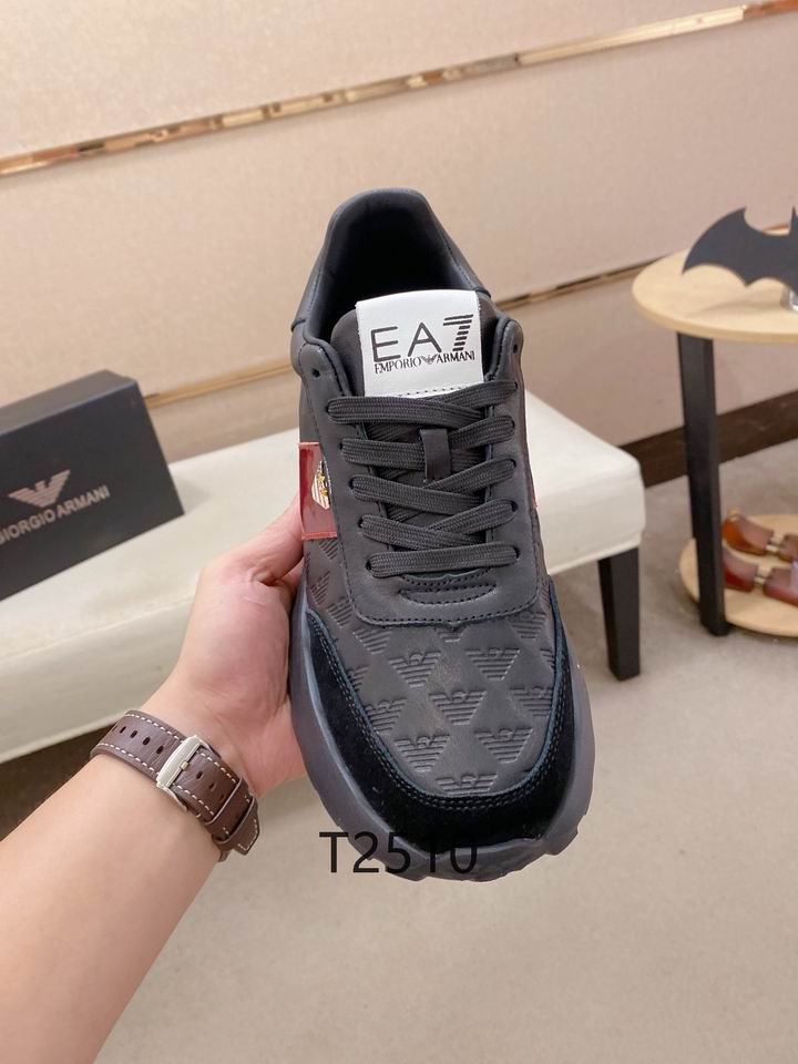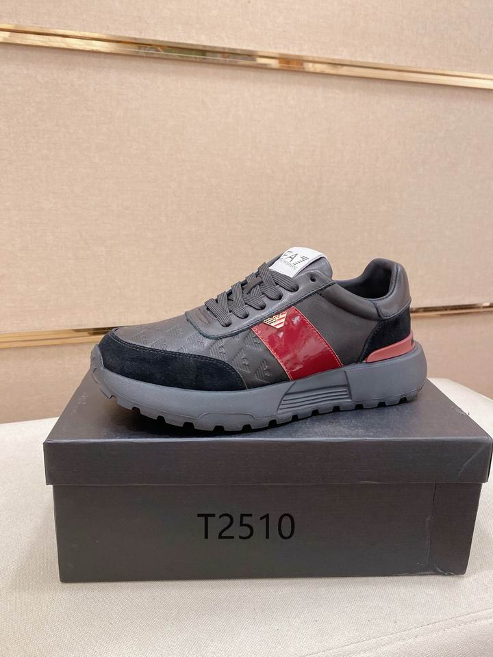 Armani Grey EA7 Sneakers are a masterclass in modern luxury footwear, designed for the man who refuses to compromise on style or comfort. These sneakers feature a sophisticated dark grey upper meticulously embossed with the iconic eagle monogram, providing a subtle yet powerful statement of brand heritage. Additionally, the design is reinforced with premium black suede panels at the toe and heel, ensuring long-lasting durability for daily urban adventures. A striking burgundy gloss stripe runs along the side, accented by a gold-tone logo emblem that adds a touch of high-end flair to the monochromatic palette.