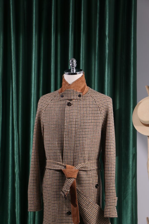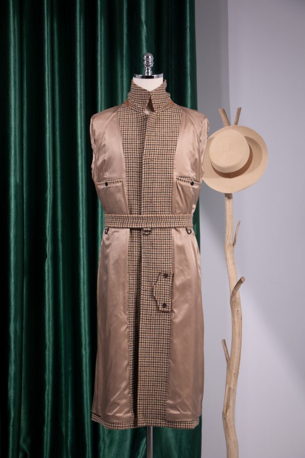 Be the first to review “Houndstooth Check Wool Blend Trench Coat in Brown and Tan”