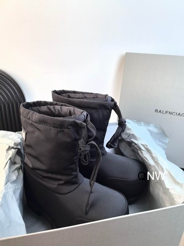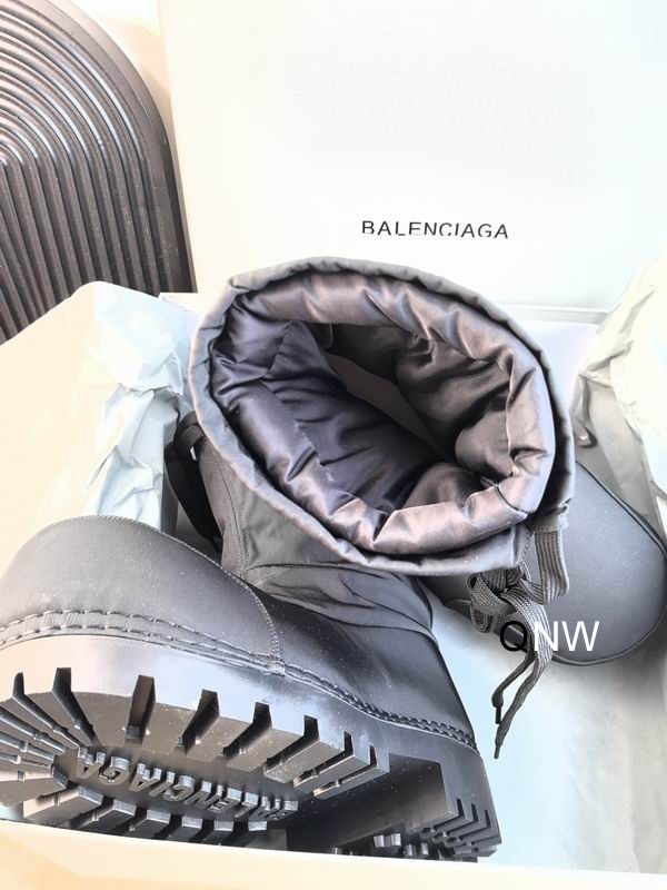 The lower portion of the boot is encased in a protective rubber shell that transitions into a heavy-duty lugged outsole. This design ensures that your feet stay dry and stable even on icy or slushy city streets. A bold, rubberized “BALENCIAGA” logo patch is featured prominently on the heel, serving as a signature mark of luxury. The interior is generously padded, providing a cozy, “cloud-like” feel that makes these boots surprisingly comfortable for long walks. Whether you’re hitting the ski slopes or navigating a winter storm in the city, the Alaska Snow Boot provides the perfect blend of extreme weather performance and high-fashion aesthetics.