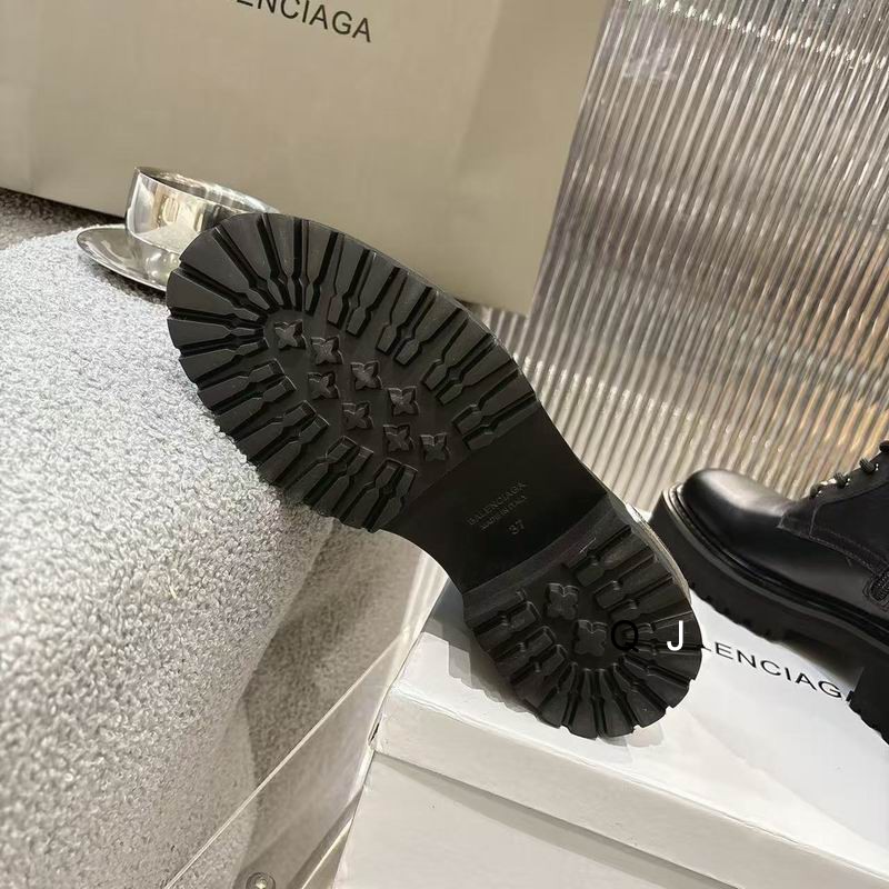 Inside, the boot is fully lined with soft leather and includes a calfskin insole to ensure a premium feel and lasting comfort, even with its heavy-duty appearance. A leather back pull-on loop assists with entry, while the external outsole proudly displays the Balenciaga logo. Whether paired with oversized tailoring or tactical streetwear, these boots serve as a powerful centerpiece, blending the DNA of traditional work boots with the avant-garde vision of modern high fashion.