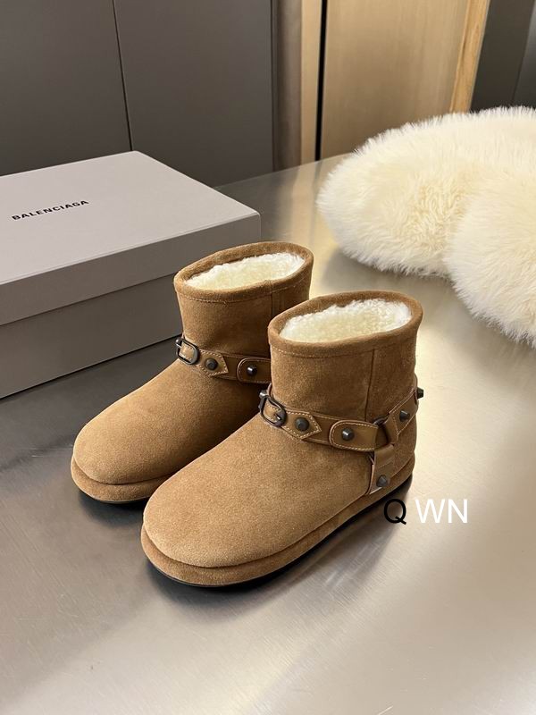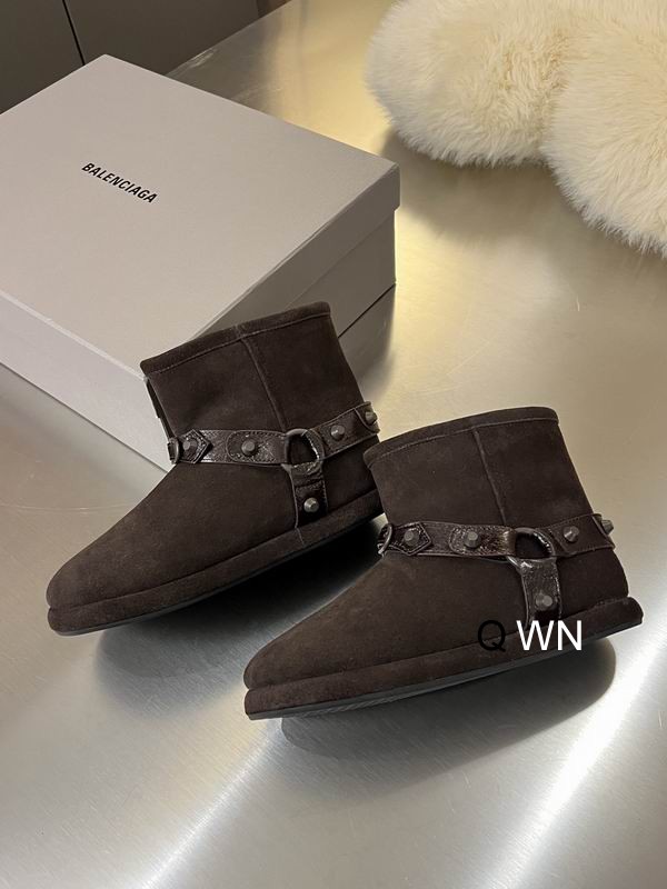 Balenciaga Shearling Harness Boots in Tan/Brown Suede represent a masterful fusion of cozy winter essentials and the brand’s signature hardware-heavy aesthetic. These boots are expertly crafted from ultra-soft, premium suede, available in both a warm tan and a deep chocolate brown hue. The exterior provides a velvet-like texture that is balanced by a rugged, buckled harness system wrapping around the ankle. This harness is detailed with tonal leather straps, metallic studs, and a functional buckle, drawing on classic biker influences to give the soft silhouette a rebellious edge.