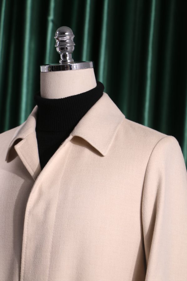 Beige Cashmere Silk Trench Coat (Style No.: BS-J9526) represents the pinnacle of high-end outerwear, utilizing a rare and exquisite fabric composition (No.: BS12655-1) of 80% cashmere and 20% silk. This specific blend offers the incredible thermal insulation of fine cashmere paired with the structural strength and subtle, natural luster of silk. The result is a garment that feels exceptionally lightweight on the body while providing a decadent hand-feel and a timeless beige hue that anchors any sophisticated wardrobe.