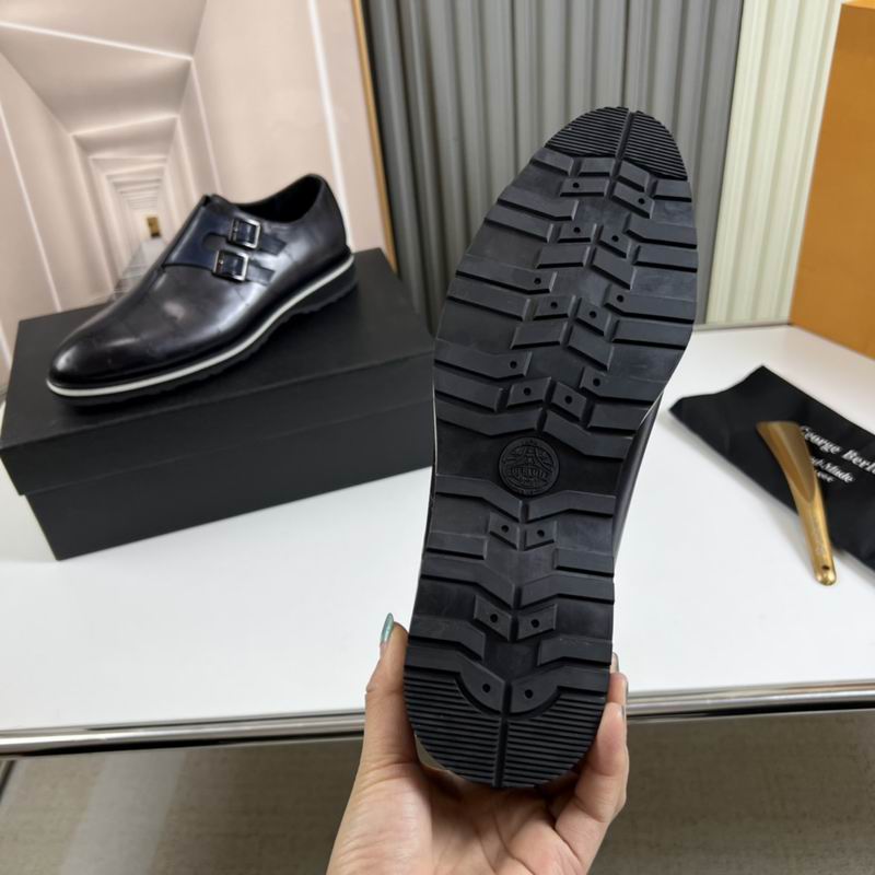 The Berluti Shadow Blue Scritto Double MonkstrapĀ Loafer represents a contemporary evolution of a classic formal silhouette. These shoes are masterfully crafted from premium Venezia leather, featuring a unique “Shadow Blue” patina that transitions from a deep midnight navy to a soft charcoal grey. Unlike standard dress shoes, this model is distinguished by its intricate Scritto calligraphy engraving that flows across the lateral side and vamp, creating a sense of wearable history. The double monkstrap closure is secured with gunmetal-tone buckles, providing a tailored fit that removes the need for laces while maintaining an elegant, streamlined profile.