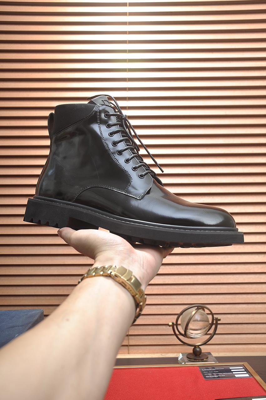 Infuse your look with rugged refinement using the Dior Patent Leather Lace-Up Combat Boot. This luxurious boot successfully merges the functional aesthetic of a combat boot with the high-fashion sheen of patent leather.