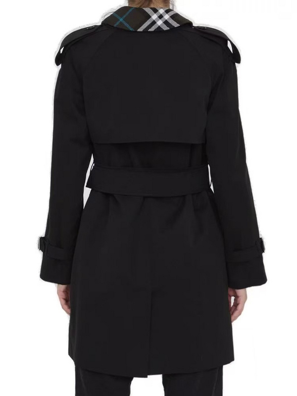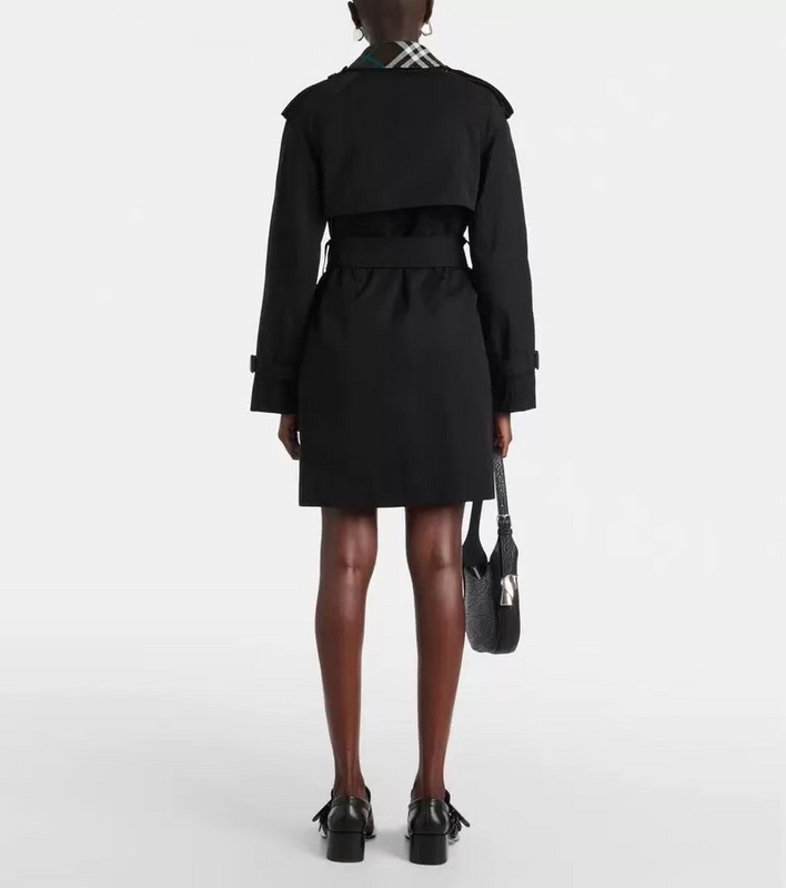 Please note that this product is not an original Burberry item; it is a high-quality piece inspired by the original brand to offer a similar aesthetic and feel. The interior is lined with the recognizable Burberry Check, which is also featured as a tonal contrast under the collar for a subtle style statement. The design is finished with genuine leather-wrapped buckles on the cuffs and waist belt, along with metallic D-rings for a secure and customized fit. This mid-length trench is the perfect balance of traditional British craftsmanship and modern utility, designed to be worn over everything from business suits to weekend casual attire. Its deep black hue and timeless silhouette ensure it remains a sophisticated staple for years to come.