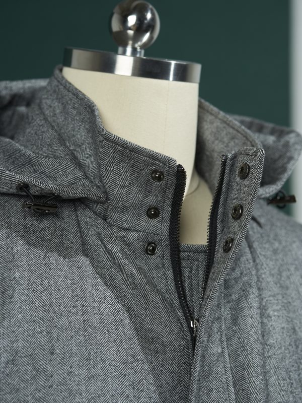 Defined by its sleek, industrial-chic aesthetic, this Grey Hooded Cotton Safari Jacket is a masterclass in modern outerwear. The jacket is meticulously crafted from a high-performance technical cotton blend, chosen for its ability to maintain a sharp, crisp silhouette while providing a lightweight and breathable feel. The cool grey palette offers a sophisticated, urban alternative to traditional earth tones, lending the garment a polished look that thrives in metropolitan environments.