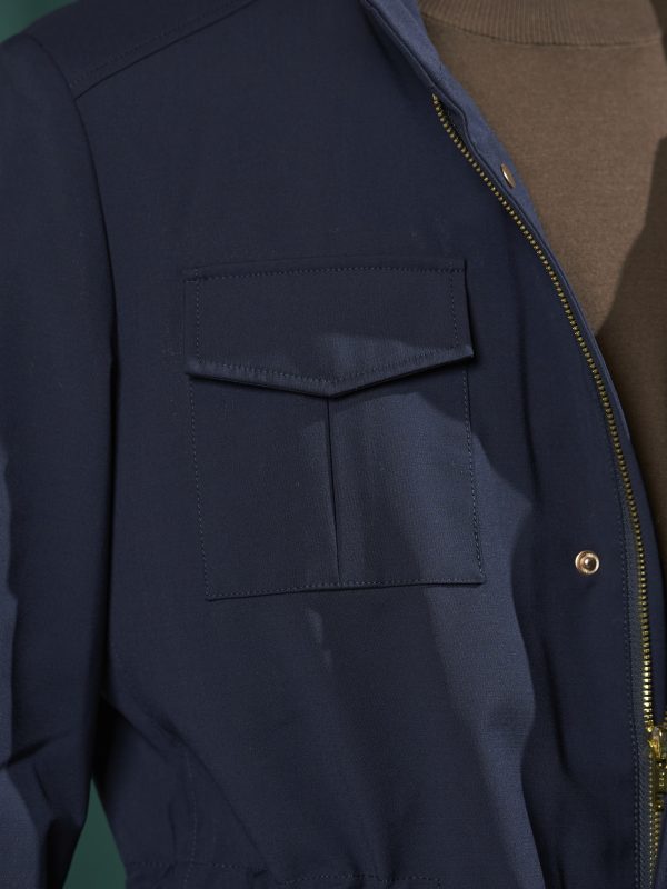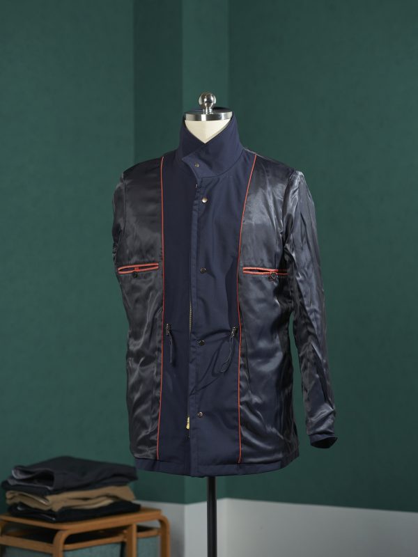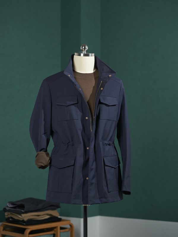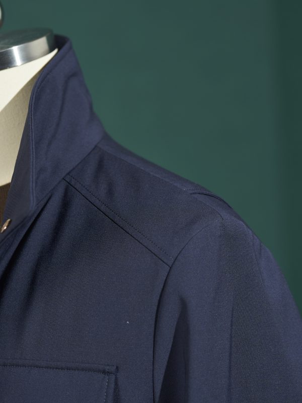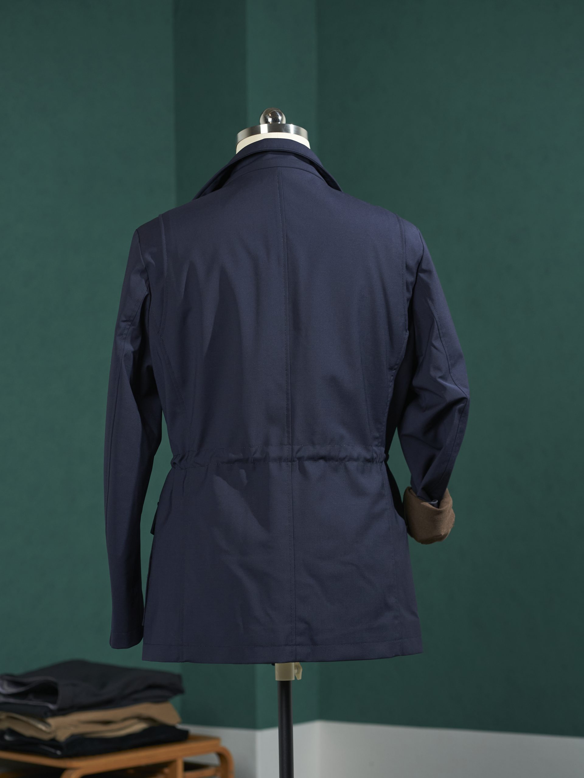 Command attention with the Navy Blue Technical Cotton Safari Jacket, a sophisticated fusion of traditional utility and streamlined modernism. This garment is meticulously engineered from a high-density technical cotton blend that offers a crisp, resilient structure while maintaining a lightweight feel suitable for year-round layering. The deep navy hue provides a formal versatility that elevates the classic field jacket silhouette, making it as appropriate for a sharp city commute as it is for a casual weekend excursion.
