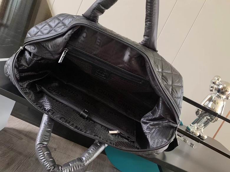 Is the Chanel Dark Grey Rolling Duffel Bag suitable for carry-on use? Yes, with dimensions of 52x32x22cm, this bag is designed to meet the carry-on requirements for most major airlines; accordingly, it fits conveniently in overhead compartments.