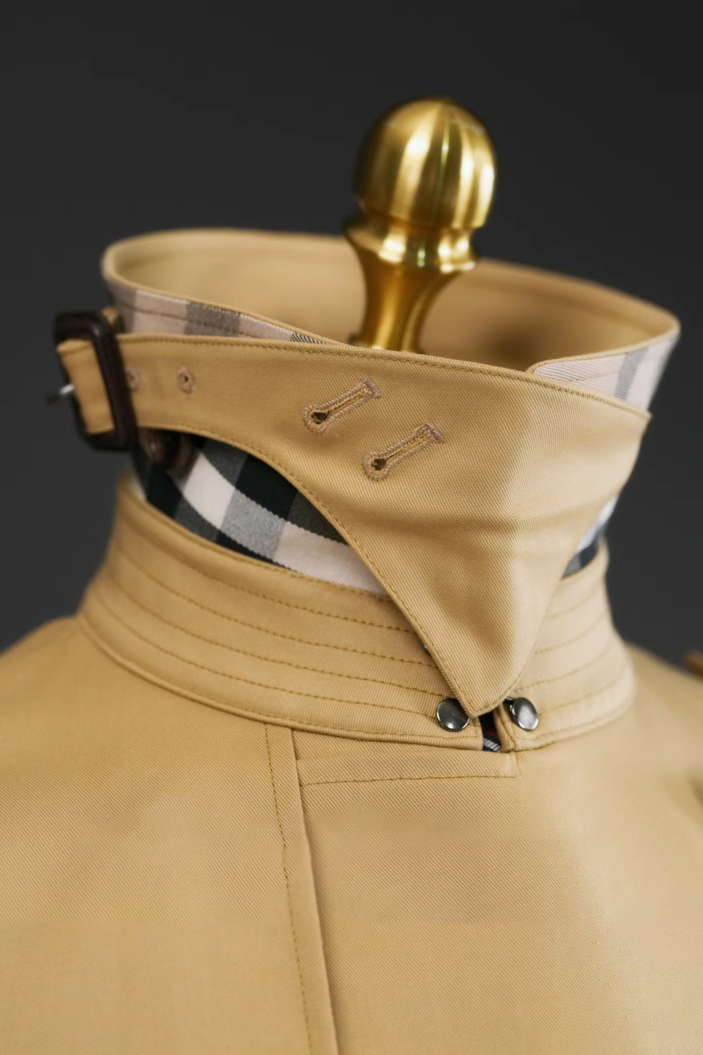 The garment’s design honors the meticulous details of original heritage trenches. It features a prominent double-breasted front secured with polished horn buttons and is equipped with functional military accents, including shoulder epaulets and a protective storm flap. The waist is defined by a matching cotton belt with a premium leather buckle, allowing for a customized, cinched fit. Additional features include adjustable sleeve straps to secure the wrists, deep insert pockets for daily essentials, and a single rear vent to ensure ease of movement. Every stitch and hardware choice reflects a commitment to high-end craftsmanship and enduring style.