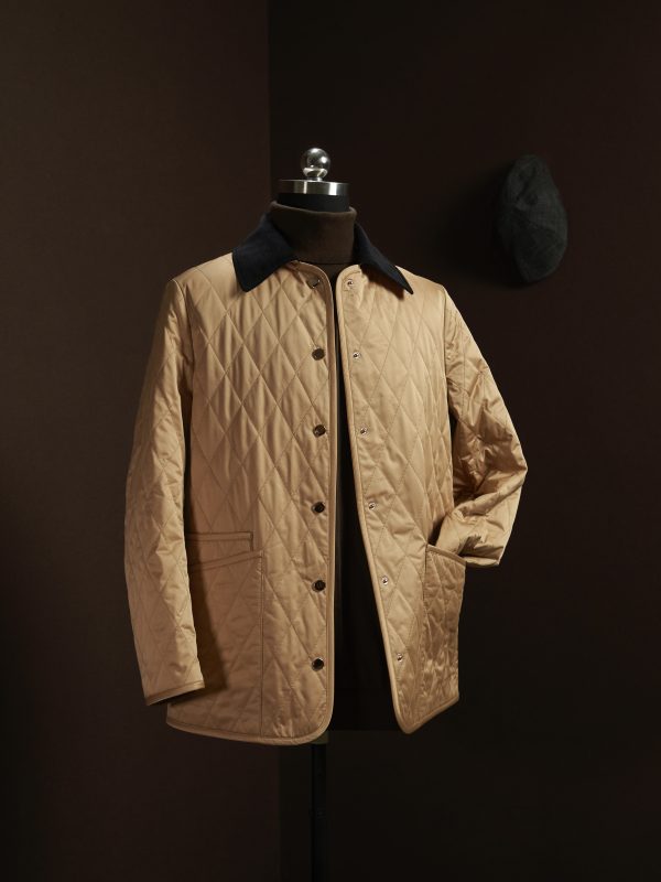 This expertly insulated jacket is crafted from 100% durable polyester and features a warm cotton-padded interior for superior cold-weather comfort. It is defined by its classic cross-stitching quilt pattern and a sophisticated turn-down collar in a contrasting color and texture. Finished with a secure snap-button closure, functional patch pockets, and a timeless checkered cotton lining, this piece offers a perfect blend of country heritage and modern urban utility.