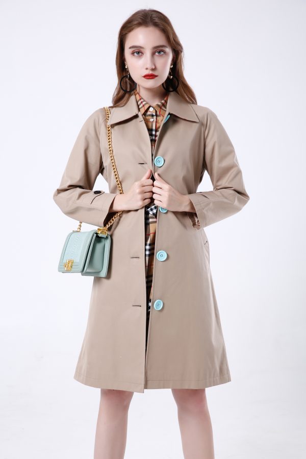 Cotton Single Breasted Raglan Coat (Style No.: BS-J1006) is an exercise in clean lines and effortless style. Utilizing a high-density 100% cotton fabric, this garment provides a crisp hand-feel and breathable durability, making it an essential companion for the changing seasons. The silhouette is intentionally simplified, removing the traditional waist belt to create a smooth, uninterrupted drape that flatters a variety of body types and outfit choices.