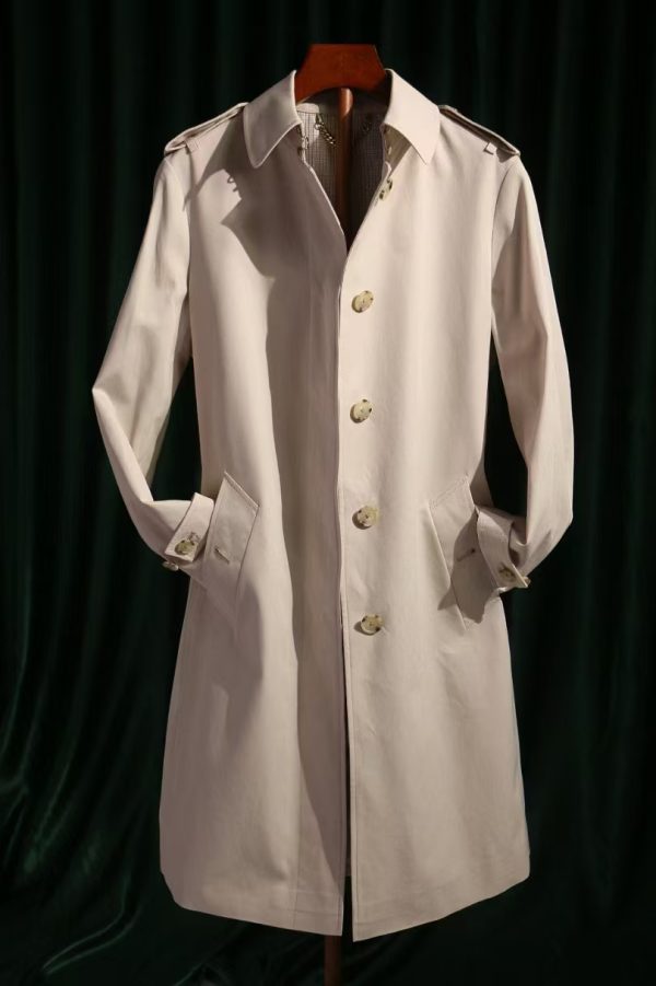Masterfully constructed from 100% premium cotton, this single-breasted trench coat offers a clean, streamlined silhouette with a modern unexposed button closure. It features traditional heritage details including shoulder epaulets and protective back storm flaps for a sophisticated architectural look. Complete with a tailored waist belt, genuine leather buckles, and authentic horn buttons, this coat is the perfect blend of minimalist design and classic utility.