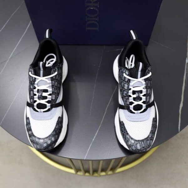 Are the Dior B22 Grey Mock-Croc and White Mesh Sneakers suitable for high-activity walking? Yes, the robust chunky midsole is specifically engineered for maximum shock absorption, while the technical mesh allows for optimal airflow during prolonged wear; additionally, the textured rubber outsole provides reliable stability on various urban surfaces.