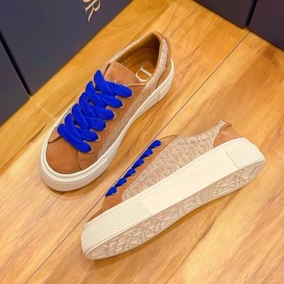 The branding on this model is both explicit and sophisticated, acting as a hallmark of the Maison’s elite craftsmanship. A prominent “DIOR” signature is featured on the tongue and further highlighted on a dedicated logo plaque at the rear of the thick, textured midsole. The design is electrified by wide, thick-woven laces in Electric Blue, which create a sharp visual tension against the warm camel tones. Grounding the sneaker is a durable rubber outsole featuring a sculptural cage motif and a coordinate-inspired tread pattern for exceptional traction. This sneaker represents a fearless exploration of contemporary fashion, merging technical performance with the timeless elegance of the Dior heritage.