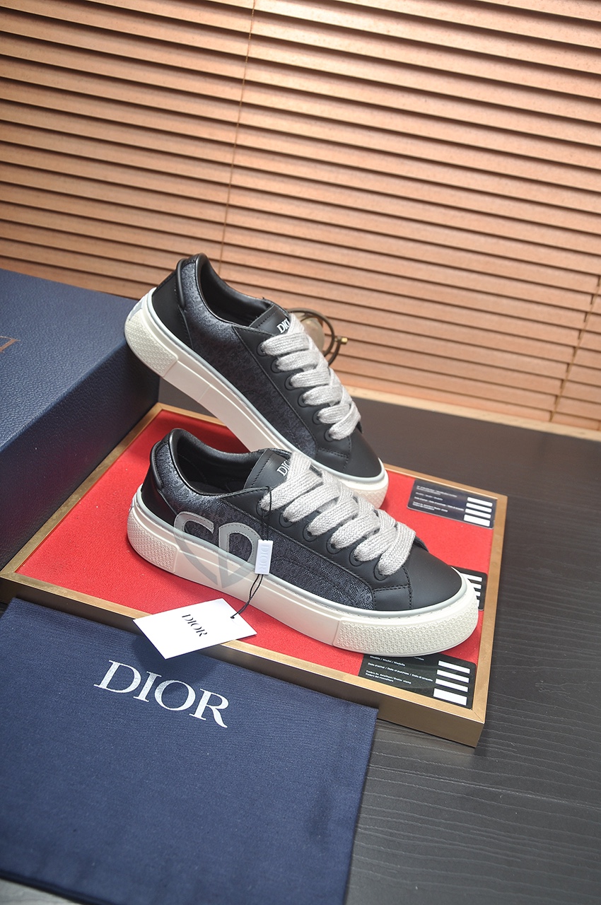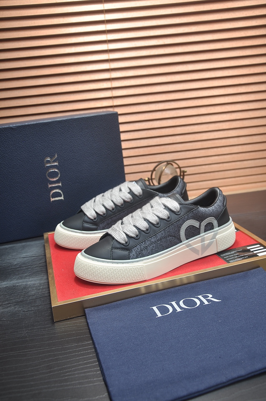 Functionality is elevated by an architectural midsole crafted from lightweight rubber, featuring a textured foxing that provides both durability and a bold visual footprint. The interior is lined with technical mesh for optimized breathability, ensuring a high level of functional comfort for all-day wear. Wide, Light Grey flat laces provide a robust contrast against the dark upper, secured by tonal eyelets that maintain a clean aesthetic. Dior branding is strategically placed on the tongue and heel, while the signature monogram motif serves as a textural backdrop that catches the light with every movement.