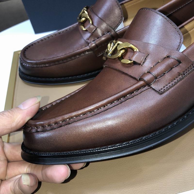 Dior Classic Gold Hardware Leather Loafer – Coffee Brown is a testament to timeless men’s footwear, blending a classic silhouette with striking decorative elements. The upper is meticulously constructed from premium leather in a deep coffee brown shade, treated with a subtle gradient effect that highlights the craftsmanship of the shoe. This particular model features a prominent gold-finish metal accessory on the strap, adding a touch of opulence and modern flair to the conservative loafer shape.