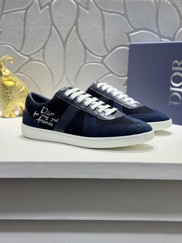 Dior Navy Blue and Black B27 Low-Top Sneaker combines luxury aesthetics with a modern, sporty silhouette that fits perfectly into any contemporary wardrobe. This exquisite footwear piece features a unique blend of navy blue and black wool suede, providing a rich texture that is both visually striking and soft to the touch. Additionally, the side panel showcases the iconic “Dior for my real friends” embroidery, adding a personal and exclusive flair to your everyday look [cite: 2026-01-16]. The crisp white rubber outsole offers a clean contrast, ensuring that these sneakers stand out in a crowd while providing reliable traction for all-day wear.