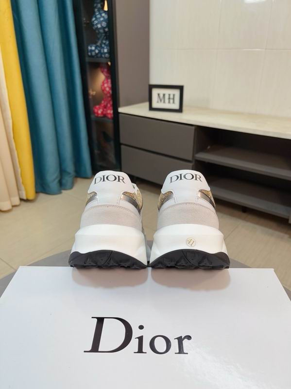 Dior Vibe Low-Top Sneaker is a masterful expression of the Maison’s ability to reinterpret heritage motifs through a modern, sporty lens. The sneaker is highlighted by its exquisite gold and beige Dior Oblique technical fabric, which provides a shimmering, high-texture contrast against the crisp white leather overlays. This intricate tapestry work is complemented by metallic silver-tone leather trim that traces the lines of the shoe, adding a futuristic touch to the classic low-top profile. A prominent “DIOR” signature is elegantly embossed on the lateral side, ensuring the sneaker’s luxury pedigree is visible from every angle.