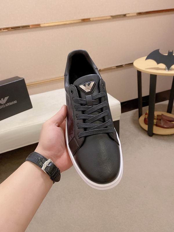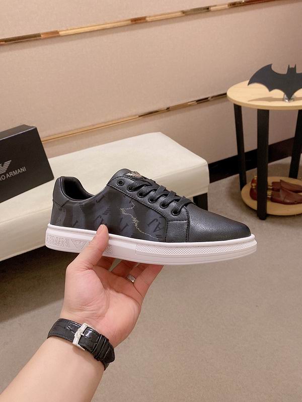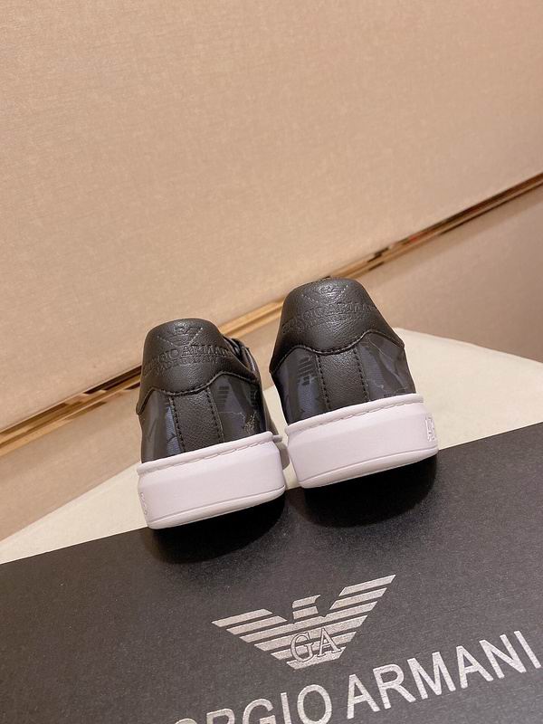Emporio Armani Monogram Low-Top Sneakers Black/White offer a luxurious and understated approach to contemporary casual footwear, making them a highly versatile staple. The upper is constructed from high-quality black material, which is subtly overlaid with a dynamic, dark gray tonal print, likely featuring the iconic Emporio Armani eagle or a stylized camouflage pattern. This textural treatment elevates the classic black sneaker silhouette beyond the ordinary, adding depth and visual interest without being overly loud. The design maintains a clean, rounded toe box and a padded ankle collar for comfort, secured by classic black flat laces. A signature feature is the small metallic Emporio Armani eagle logo embellishment placed at the top of the tongue, providing a refined flash of luxury hardware. The sole is thick, durable white rubber, creating a striking contrast against the dark upper, which is a hallmark of modern sneaker design and provides excellent cushioning. The side of the midsole is subtly embossed with the Emporio Armani name, reinforcing the brand identity. These sneakers are perfect for the discerning individual who appreciates subtle detailing and premium construction. They effortlessly bridge the gap between smart-casual and relaxed attire, pairing flawlessly with anything from tailored black trousers and dark denim to premium joggers for a polished weekend look. The construction is solid, promising both style and longevity in wear.