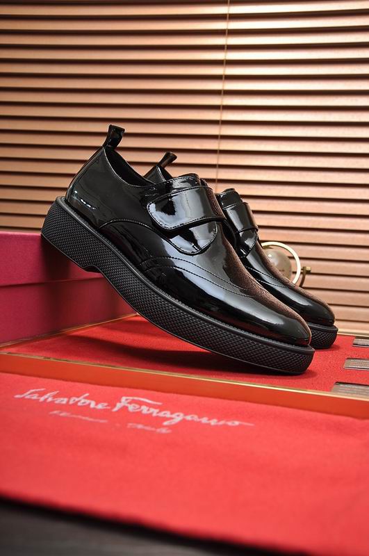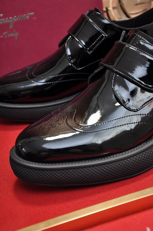 Ferragamo Black Patent Wingtip is a striking fusion of classic brogue detailing and modern athletic construction, designed for the fashion-forward individual who demands both style and versatility. The upper is crafted from high-grade patent leather, providing a brilliant mirror-like shine that elevates the traditional wingtip silhouette to a contemporary status symbol. Detailed perforations and serrated edges follow the classic “W” shape across the toe box, paying homage to heritage English shoemaking while maintaining a sleek, Italian-inspired profile. Instead of a traditional dress sole, this model features a thick, textured rubber midsole that provides exceptional cushioning and a rugged aesthetic. A unique velcro strap closure replaces standard laces, offering a clean look and a secure, adjustable fit for the wearer.