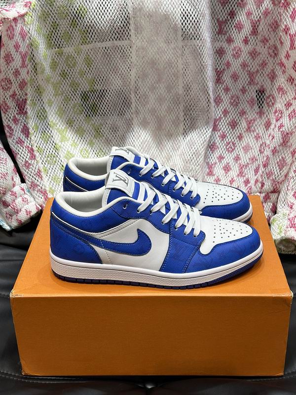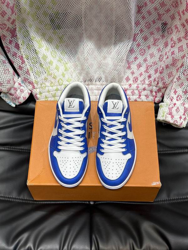 Elevate your casual wardrobe with the Louis Vuitton Jordan 1 Style Low Canvas Sneaker in a striking Royal Blue and White colorway. Crafted with durable canvas on the toe box and side panels, complemented by smooth synthetic leather overlays, these sneakers offer a lightweight yet sturdy construction perfect for daily wear. The cushioned mid sole ensures superior comfort and shock absorption, while the padded collar provides ankle support and a snug feel. The bold two-tone aesthetic is inspired by basketball heritage, ensuring these low-tops make a statement with any outfit, from joggers to jeans.