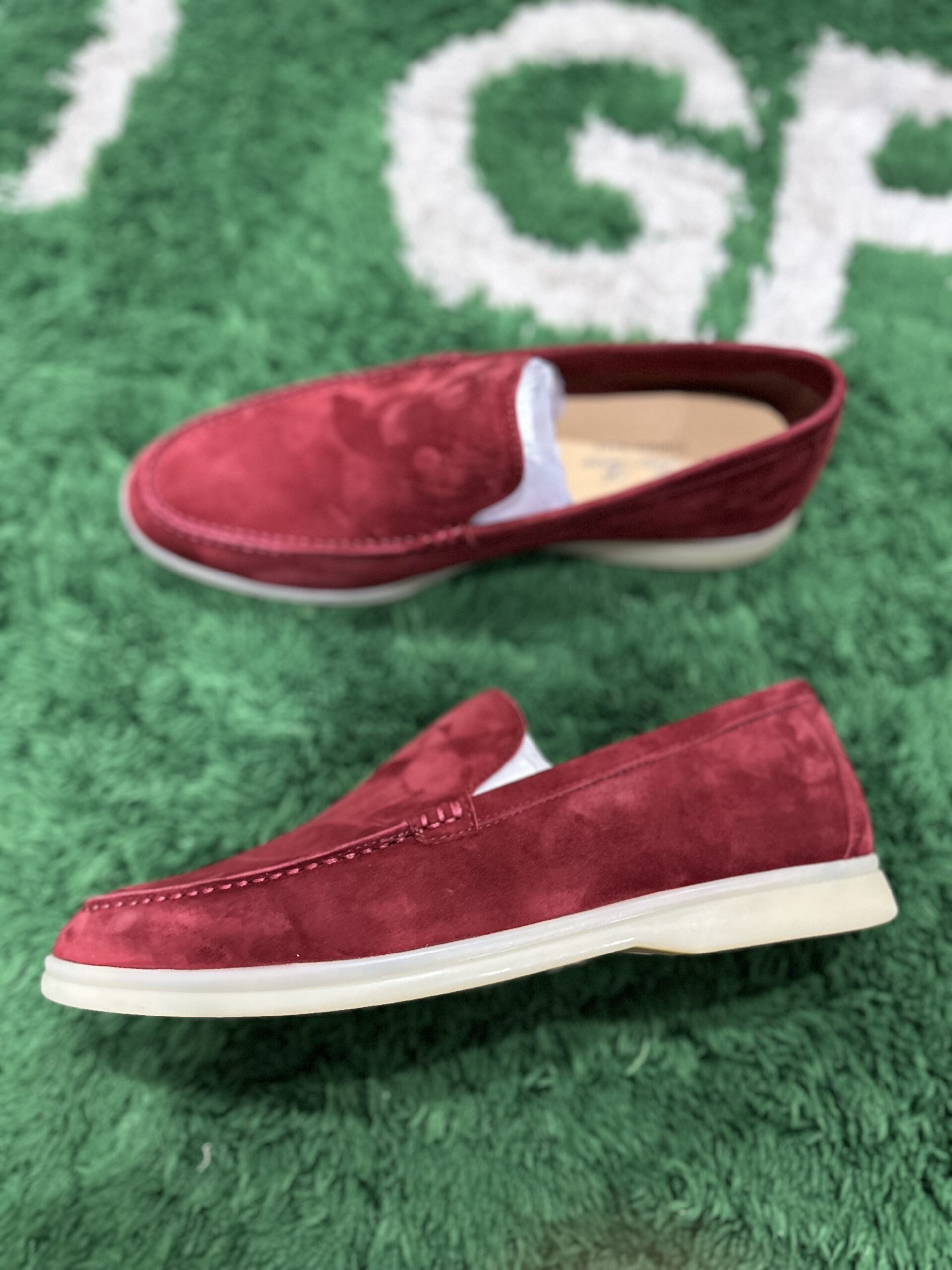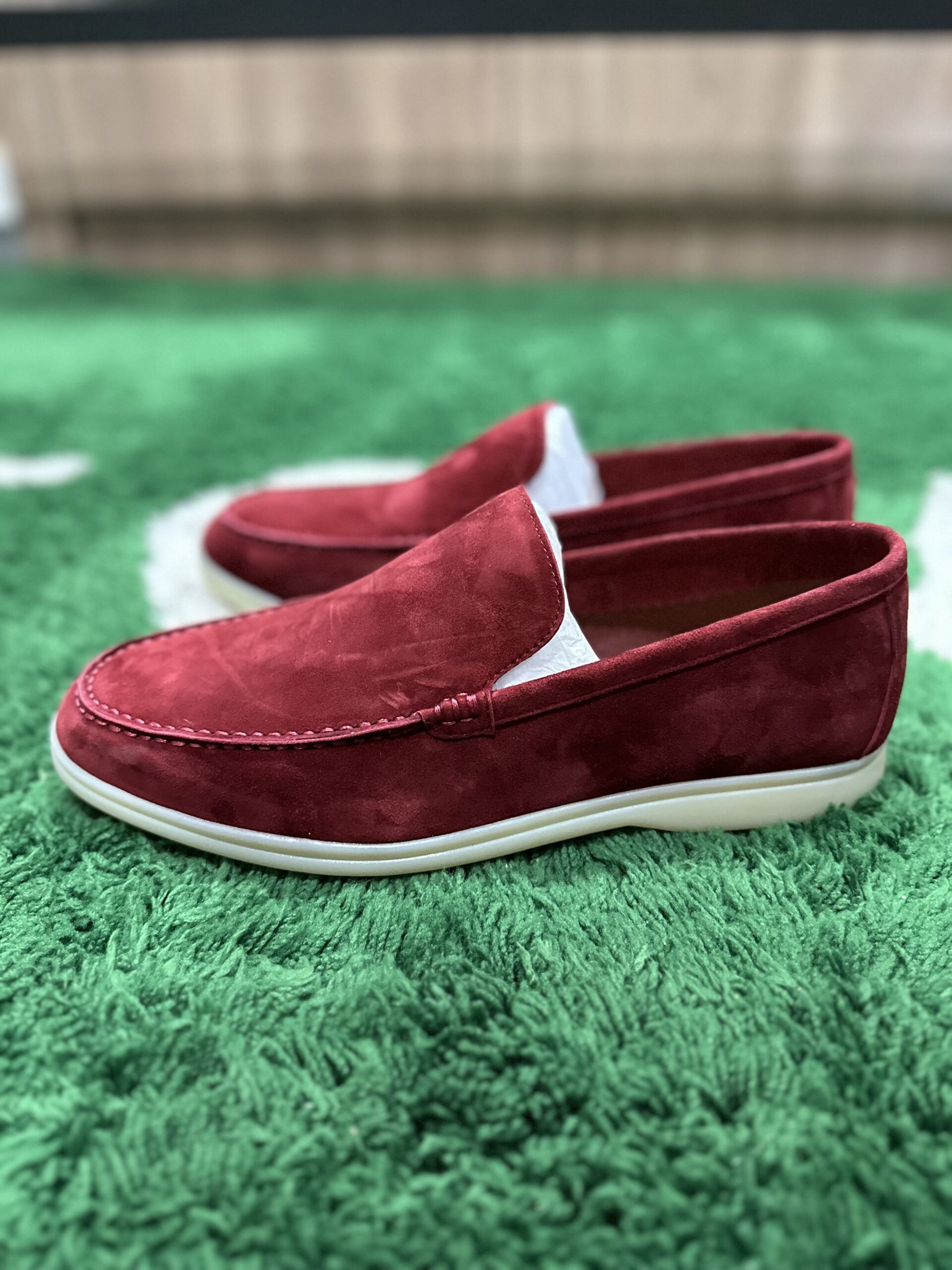 The Loro Piana Summer Walk Burgundy is a premium suede loafer featuring a water-repellent finish and the collection’s signature non-slip white rubber sole. Hand-stitched in Italy, these slip-ons combine a rich wine-coloured upper with a breathable leather lining for ultimate comfort. They offer a sophisticated, minimalist look that perfectly bridges the gap between casual comfort and formal elegance.
