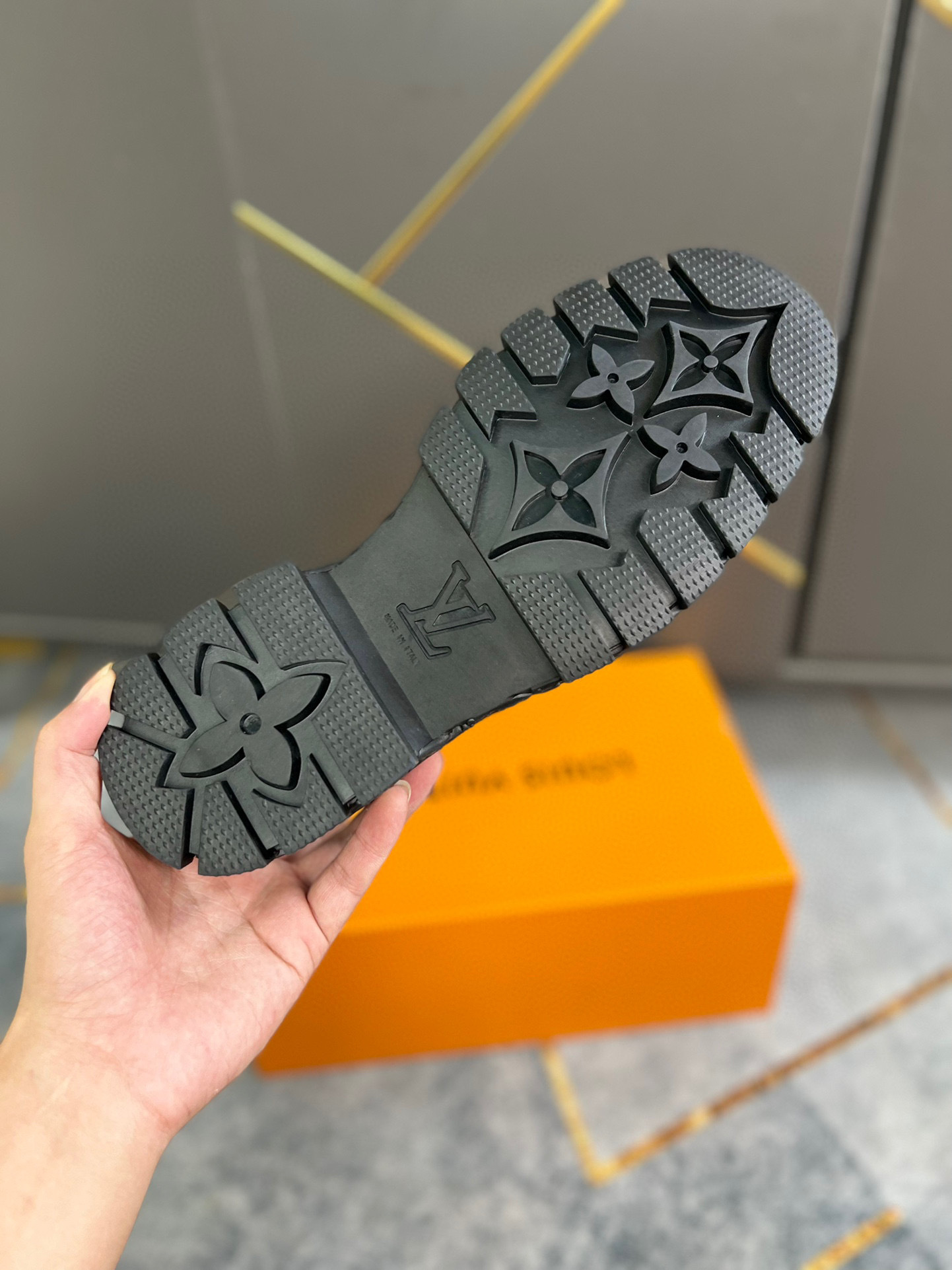 The design is built upon an exaggerated, micro-rubber lug outsole that offers significant height without sacrificing stability. Furthermore, this thick platform sole is intricately detailed with embossed Monogram Flowers along the edges, showcasing iconic branding in a subtle, three-dimensional way. The interior is lined with smooth, premium leather to ensure a comfortable fit that stands up to all-day wear. Consequently, these loafers provide the perfect balance between a rugged, “chunky” aesthetic and the refined elegance expected from high-end footwear.