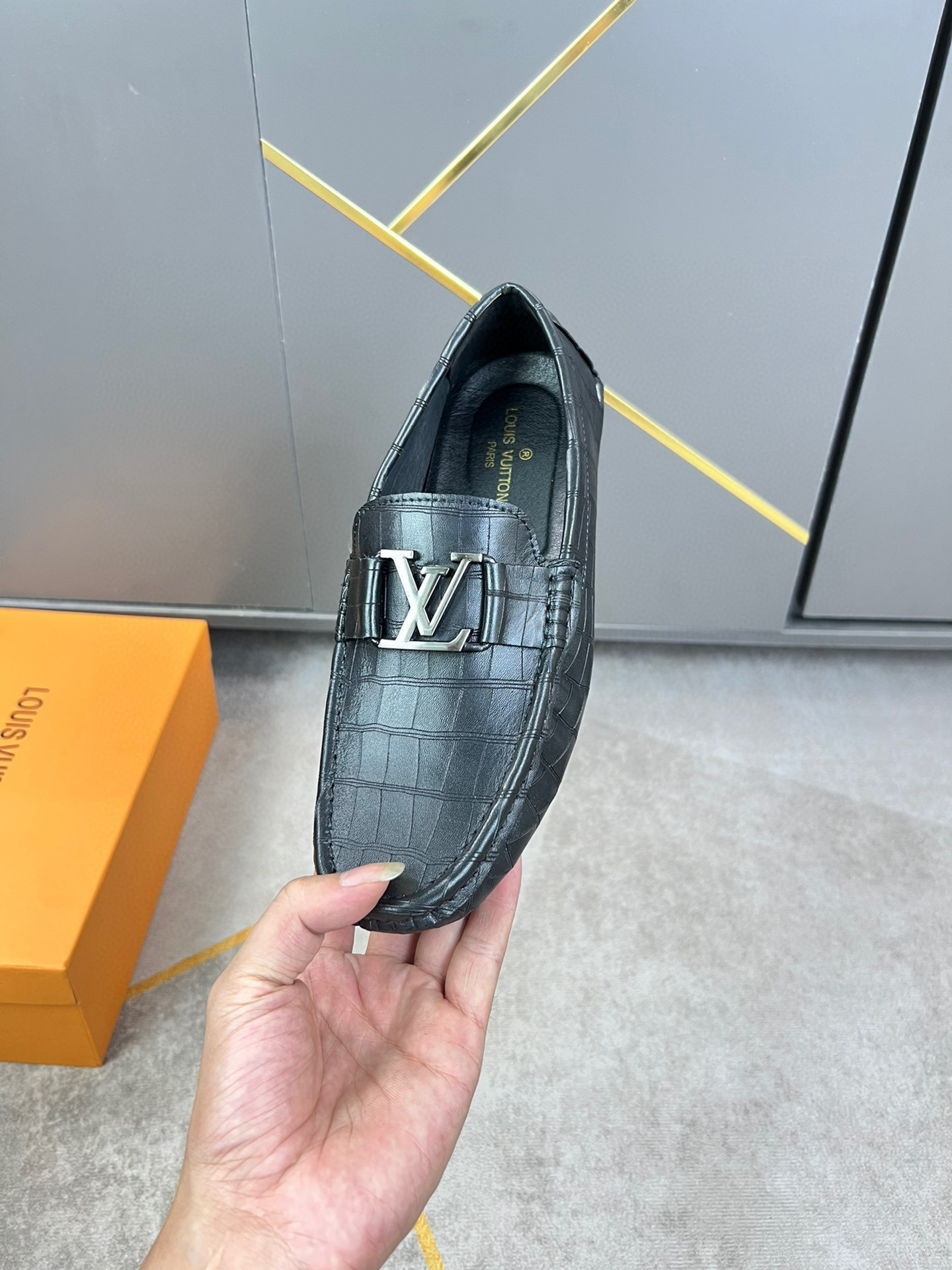 Louis Vuitton Black Croc Buckle Loafers are designed for customers who want a bold look that still feels easy to wear. The deep black tone paired with a textured croc style finish gives the shoe a strong presence without looking loud. Additionally, the clean buckle detail adds character while keeping the overall design balanced and wearable.These Louis Vuitton Black Croc Buckle Loafers are made for everyday confidence. Furthermore, the soft inner lining supports your feet during long hours, making them suitable for workdays, dinners, or casual outings. The shape feels natural on the foot, allowing smooth movement from morning to night. Consequently, you can pair them with trousers, jeans, or smart casual outfits without overthinking your look.Comfort is a major highlight here. Moreover, the flexible sole helps reduce pressure while walking, and the slip on design saves time when you are on the go. The textured surface also helps hide small marks, which keeps the shoes looking neat longer. As a result, these loafers are practical as well as stylish.