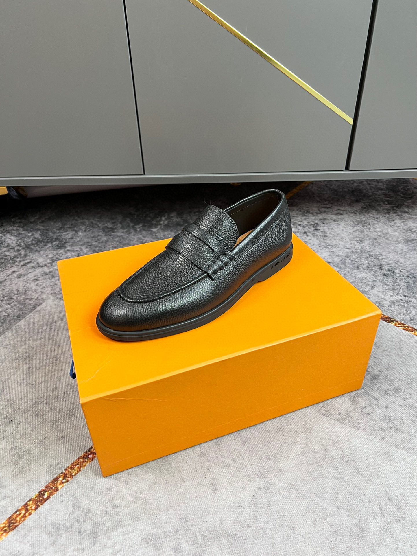 Louis Vuitton Black Leather Penny Loafer delivers a clean, confident look designed for everyday comfort and smart occasions. This loafer features a smooth black textured leather finish that feels soft while holding its shape throughout the day. Additionally, the classic penny strap design gives the shoe a timeless feel that works well with both formal and relaxed outfits.Furthermore, the lightweight sole helps reduce foot pressure, making it suitable for long hours of wear. The interior lining is smooth and breathable, allowing your feet to stay comfortable even during busy days. Consequently, this makes the shoe a reliable choice for office use, meetings, and casual evenings.Moreover, the slip-on structure allows for quick wear without compromising support. The stitched edges improve durability while adding a subtle detail that enhances the overall look. As a result, the shoe maintains a balanced appearance that feels refined without being overly bold.In addition, the black color offers versatility, pairing easily with trousers, jeans, or smart casual outfits. The low-profile sole provides steady grip on different surfaces, helping you move with confidence. Therefore, this loafer is ideal for men who value comfort, ease, and clean design.