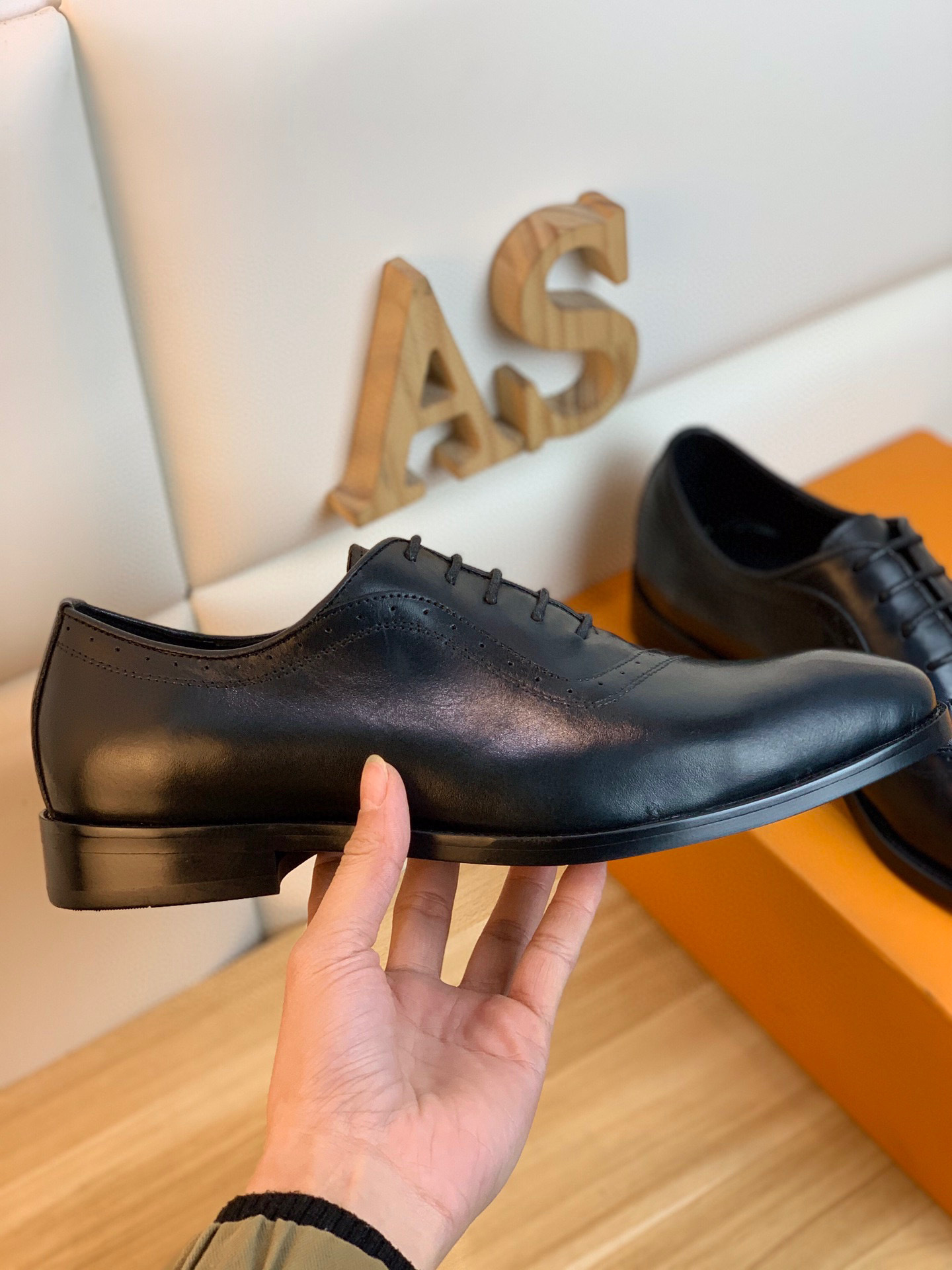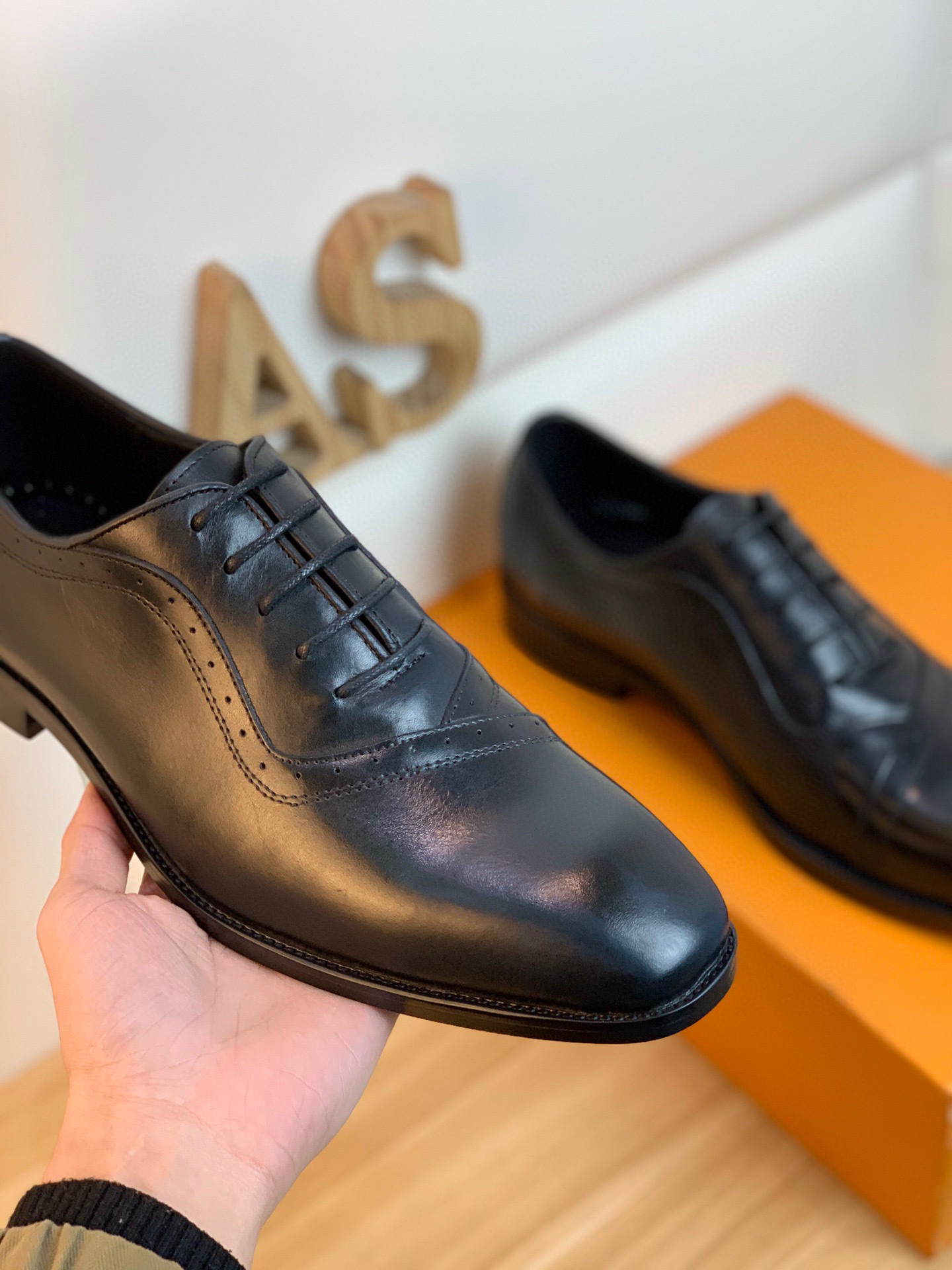 How do I maintain the perforated details on my Louis Vuitton Brogue Detail Black Oxford? You should use a soft-bristled brush to gently remove dust from the brogue holes; subsequently, apply a thin layer of wax polish to maintain the leather’s deep black shine.