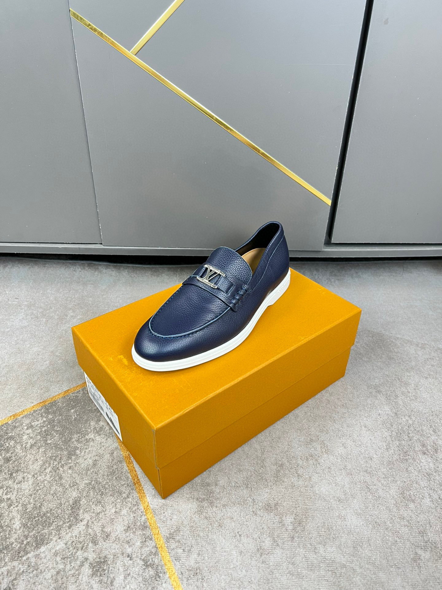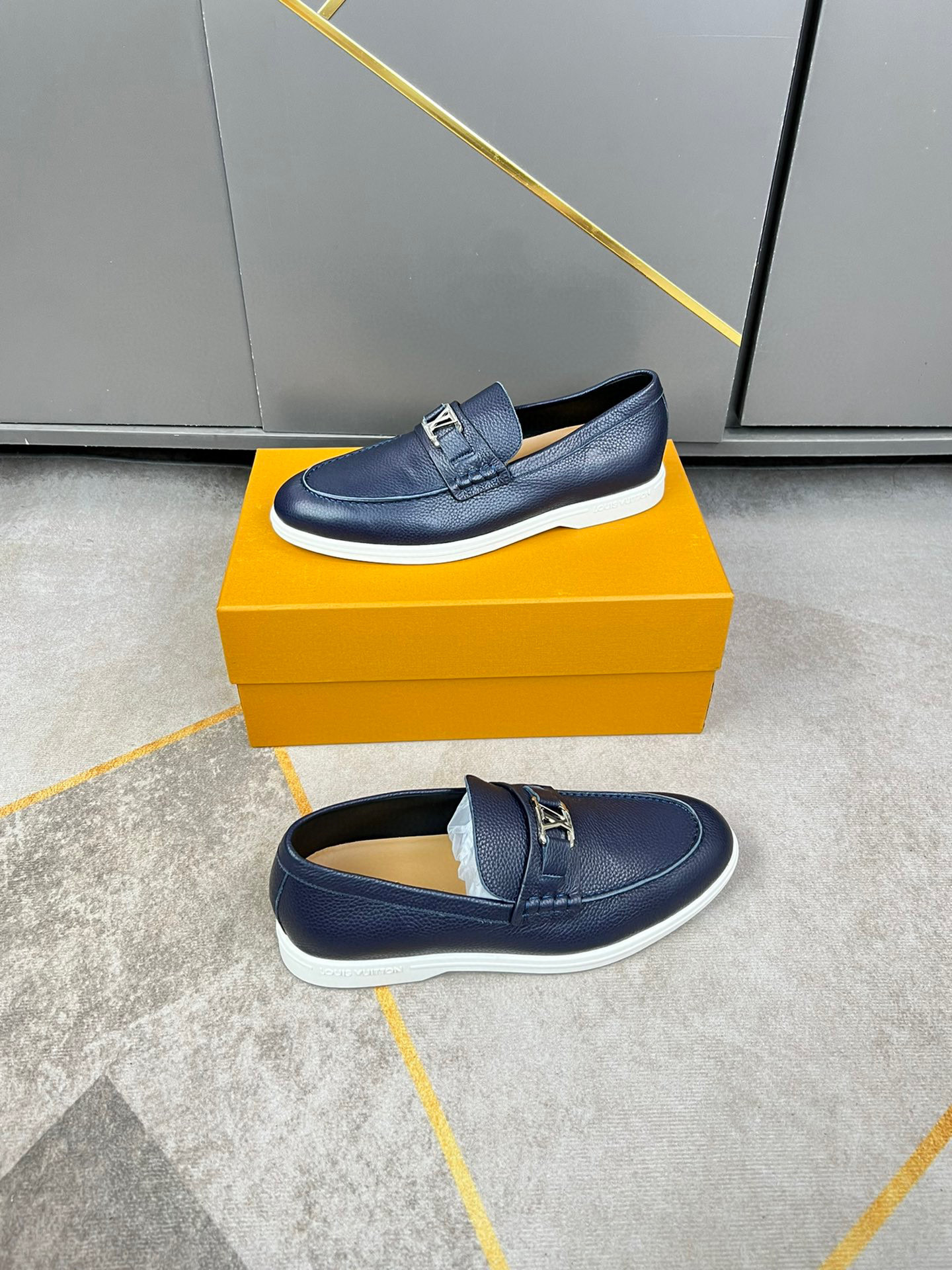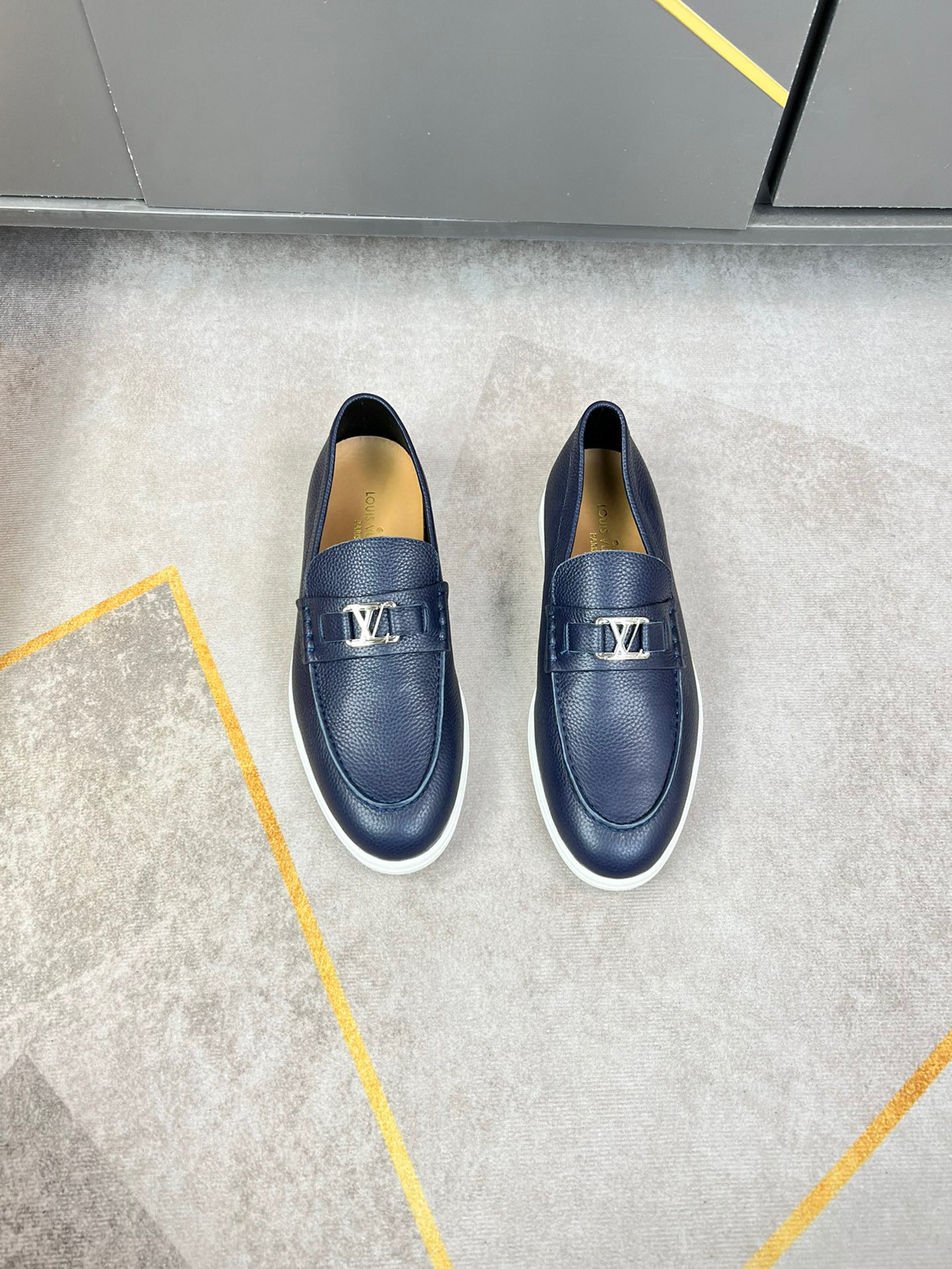 Louis Vuitton Navy Pebble Leather Loafers combine modern refinement with everyday practicality, offering a stylish footwear option for men who value comfort and elegance. Crafted in a rich navy tone, this design stands apart from classic black styles while remaining versatile enough for both formal and smart casual wear. Furthermore, the pebbled leather texture adds depth and character, giving the loafers a premium look that feels contemporary and confident.