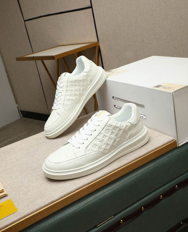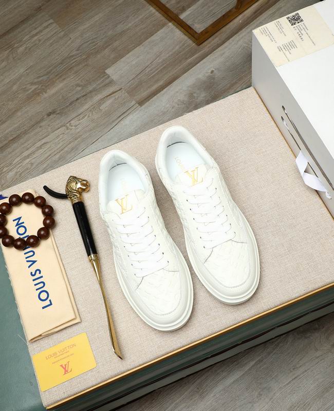 The Louis Vuitton Sneaker White Embossed Monogram Leather embodies subtle sophistication and clean, minimalist styling. The entire upper is crafted from a high-quality, leather-look material in a pure white colorway, giving the sneaker a crisp and versatile appearance. What sets this pair apart is the meticulous all-over embossing of a pattern inspired by the iconic luxury brand’s monogram, adding rich texture and depth without relying on contrasting colors. This tone-on-tone detailing allows the sneaker to maintain a versatile, all-white aesthetic while retaining a recognizable designer-inspired flair.
