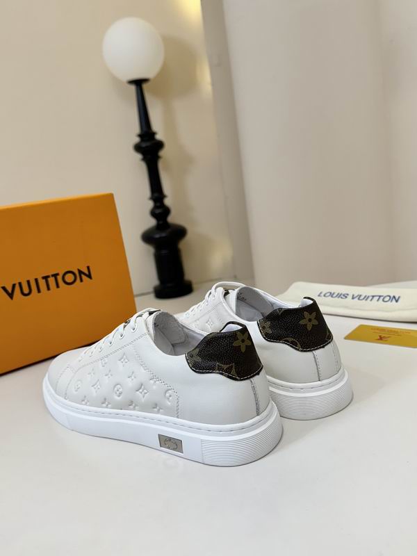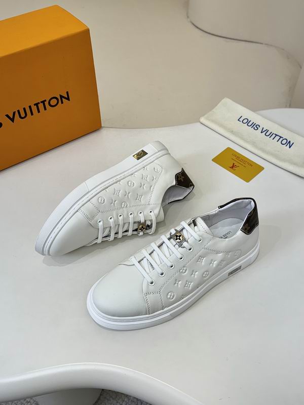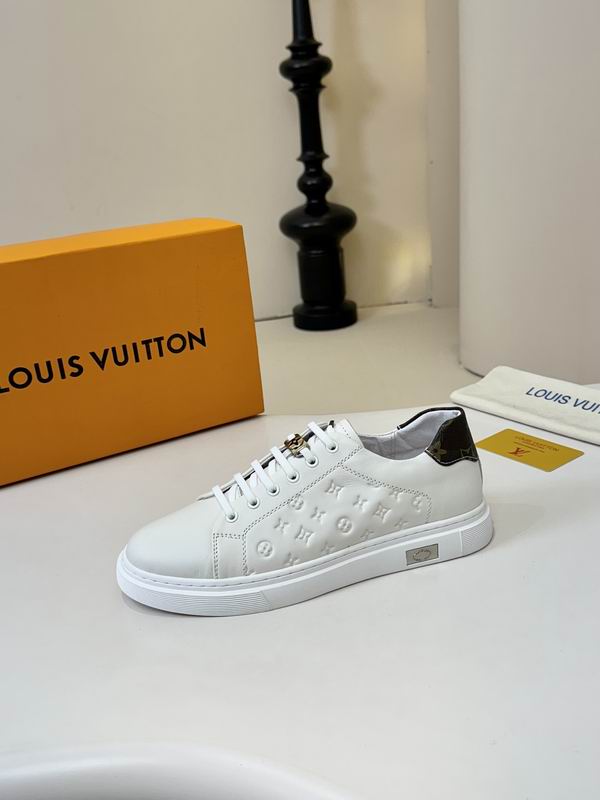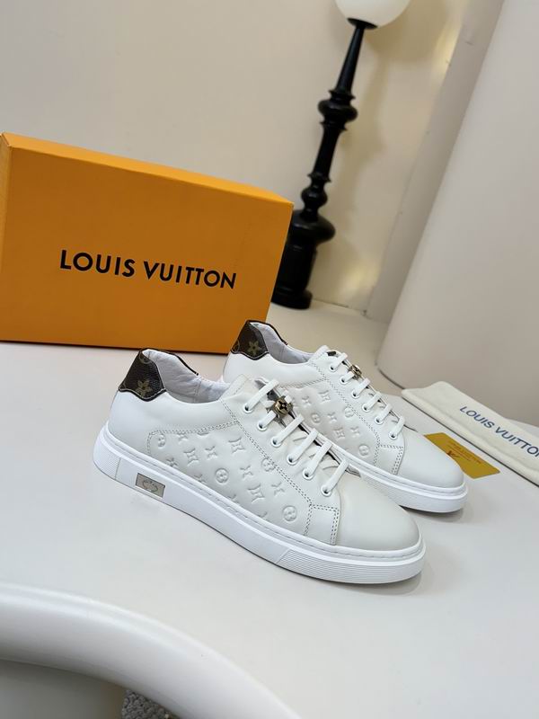 Sneaker fans seeking a clean, high-impact aesthetic will be drawn to this L V Trainer style model. White leather is the primary color, providing a crisp and versatile look for any season. Designed to deliver visual punch, this footwear uses sharp black contrast lines and graphics. Featuring a bold, multi-layered upper, this low-top trainer ensures a durable and structured feel. Trainer profiles borrow elements from vintage court shoes, blending them with modern, chunky dimensions. Style details include the unique lacing system and the signature ‘V’ element on the padded tongue. Monogram-style symbols are printed in black, creating a powerful graphic statement across the shoe’s key panels. Inspired by celebrated luxury street designs, this shoe offers an aspirational look at an attainable price. Comfort is paramount, supported by a structured heel and a thick, supportive rubber out sole. Low-top construction ensures ease of wear and maximum styling versatility. Black accents define the graphic borders and enhance the depth of the overall design. Wearing this model makes a confident and stylish statement in any urban setting. These trainers are an essential addition for those who love graphic, designer-inspired footwear. Product construction prioritizes the balance between aesthetic appeal and everyday functionality. Luxury influence is visible in the detailed paneling and the overall high-profile silhouette. Design focuses on creating energetic motion through the placement of the contrasting graphics. Graphic overlays are the main feature, giving the shoe a youthful and distinct visual appeal. Overall, this is an exceptional piece of clean, street-ready gear.