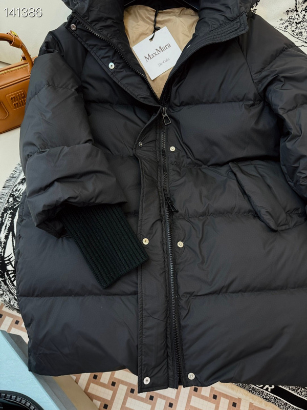 Please note that these products are not original products but were inspired by the original product brand, crafted to capture the aesthetic and functional essence of the designer’s vision for a wider audience. The craftsmanship focuses on replicating the horizontal quilting paMax Mara The Cube Water-Resistant Puffer Jacket in Black is a masterclass in functional luxury, designed for those who refuse to compromise on style during the colder months. This piece features a sophisticated matte black finish that exudes understated elegance, paired with the iconic voluminous silhouette that has made “The Cube” collection a staple in high-end outerwear. The jacket is engineered with high-quality technical fabrics designed to provide exceptional warmth while remaining surprisingly lightweight and easy to pack. Notable design elements include a generous integrated hood, deep welt pockets for utility, and unique ribbed knit storm cuffs that provide a snug fit against the wrist to seal out the cold. The interior reveals a contrasting camel-toned lining, a signature touch that highlights the brand’s heritage in tailoring.