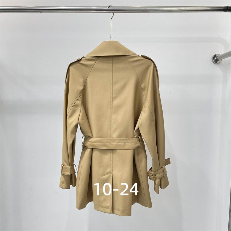 Mid-Thigh Double-Breasted Trench Coat in Honey is a youthful and practical take on the classic outerwear piece, featuring a shorter, more modern cut. This trench is presented in the rich, classic Honey beige color. Its defining feature is its mid-thigh or short length, making it highly versatile for layering over dresses or for warmer weather commuting. It maintains the essential double-breasted structure and traditional trench detailing, including a wide collar, shoulder epaulets, and adjustable cuff straps. The front closure and hardware are subtle, blending seamlessly with the fabric. The coat is secured with a matching fabric belt, which can be tied tightly to emphasize the waist or left open for a casual, defined silhouette. Please note: This product is not an original product. It is an inspired piece that meticulously captures the classic styling, cut, and aesthetic appeal of the original design. The shorter length offers a contemporary feel while retaining the enduring elegance of the heritage design, making it an excellent piece for transitioning between seasons.