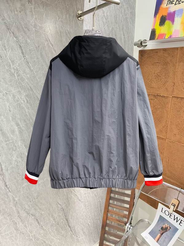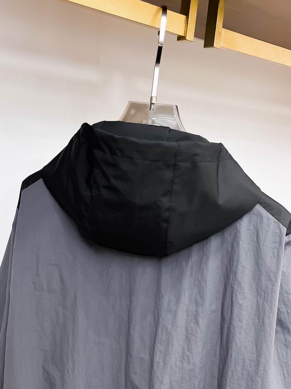 Upgrade your outerwear with this striking Color Block Hooded Technical Jacket. The grey body and black shoulder panels create a sharp, contemporary contrast. Durable technical fabric ensures dependable resistance, so you remain protected from wind and light moisture. A snap-button front and zippered side pockets offer secure closures and storage. A utility patch pocket on the chest adds a functional accent, and the hood provides extra coverage. Elasticated cuffs, finished with a stylish red and white stripe, lock in warmth. Choose high quality; master transitional weather.