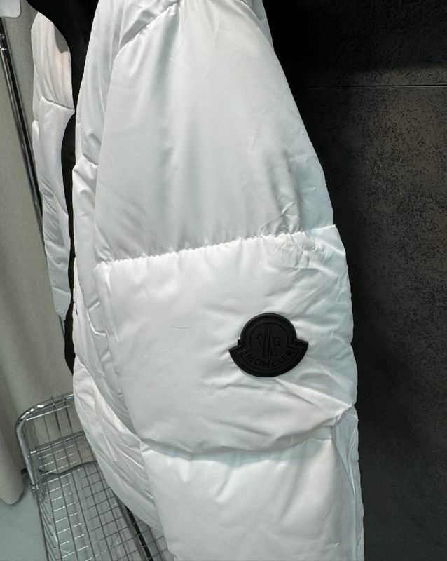 Moncler Contrast Logo White is a striking outerwear piece that masters the art of monochromatic design and bold branding. This jacket features a clean, snow-white matte finish across its high-quality technical shell, providing a fresh and bright aesthetic for the winter season. The defining characteristic of this model is the broad, vertical black band running down the center, which features the brand name embossed in tonal lettering for a sophisticated yet unmistakable look. This high-contrast design extends to the hood, which is finished in a solid matte black to create a sharp visual balance against the white body. The jacket is constructed with generous rectangular quilting and premium insulation to ensure maximum warmth in freezing temperatures. Please note that these products are not original but were inspired by the original brand, crafted to provide a similar look and feel for fashion enthusiasts who appreciate the luxury aesthetic. Functional details include a high-coverage neck collar, snap-button closures over the central zip, and a sleek black logo patch on the left sleeve. Finished with adjustable snap-button cuffs and angled side pockets, this jacket is the perfect statement piece for those who want a modern, high-contrast streetwear look that doesn’t compromise on thermal performance.
