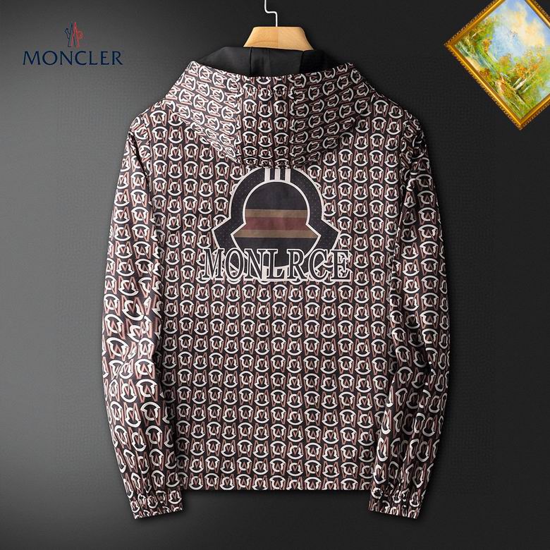 You zip this jacket up for instant warmth, while the adjustable hood shields you from the elements. The stand-out feature is the repeating graphic print of the iconic Moncler logo, which gives you a bold, recognizable style. Complete with a comfortable inner lining and practical pockets, this jacket carries your everyday essentials securely. Buy this jacket today and make a confident statement wherever you go!