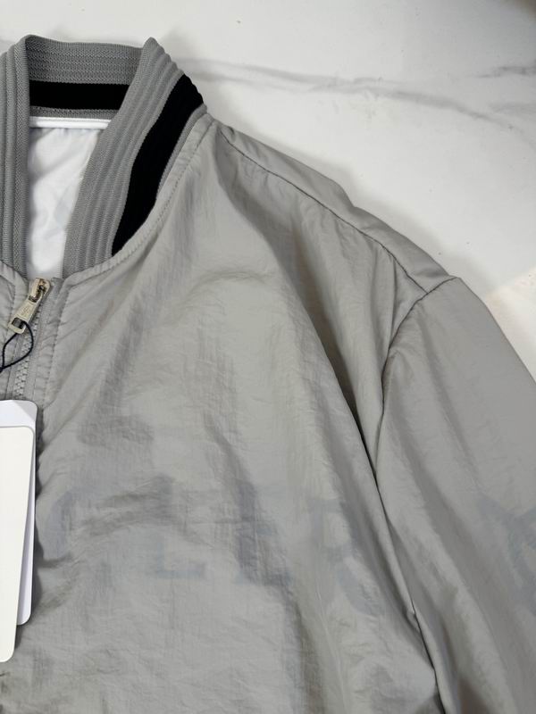 Inject effortless cool into your wardrobe with the Moncler Lightweight Bomber Jacket. This piece reimagines the classic silhouette with a sleek, versatile grey finish and sharp, black and white striped details.