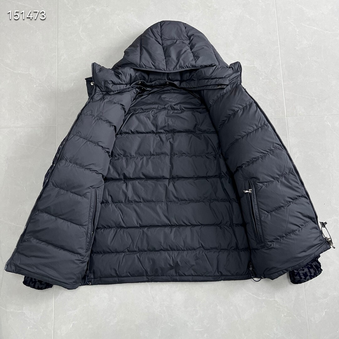 Moncler Monogram Puffer Jacket Navy is a striking piece of cold-weather gear defined by its unique all-over “M” monogram pattern in subtle shades of navy and charcoal gray. This jacket features a contemporary design that merges high fashion with essential winter performance, utilizing high-quality down fill for exceptional warmth without excessive bulk. The exterior is crafted with a matte finish fabric that showcases the intricate repeating logo print across the body and arms. It is equipped with a full-front zip closure and a practical, generously padded hood, providing maximum protection from wind and cold. Functionality is key, featuring two zippered hand pockets on the lower torso and an additional small logo patch pocket on the left arm. The use of black zipper hardware and solid-colored hood and cuffs provides a neat contrast to the patterned shell, anchoring the graphic design. The interior is horizontally quilted and solid dark blue or black, ensuring a smooth fit over layers. This jacket appeals to those seeking a distinctive designer-inspired look that still delivers on the core promise of superior insulation and comfort during harsh weather. Its detailed graphic shell sets it apart from traditional solid-colored puffers. Please note that this product is not an original branded item but was inspired by the design of the original brand.