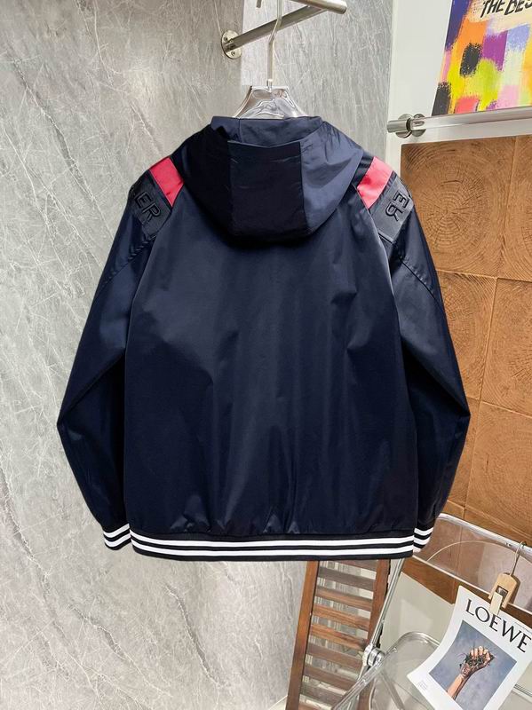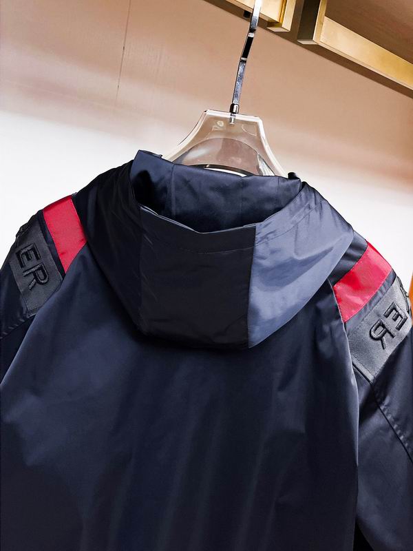 Aesthetically, the jacket features striking details, including bold red shoulder accents and clean white double stripes on the trim.