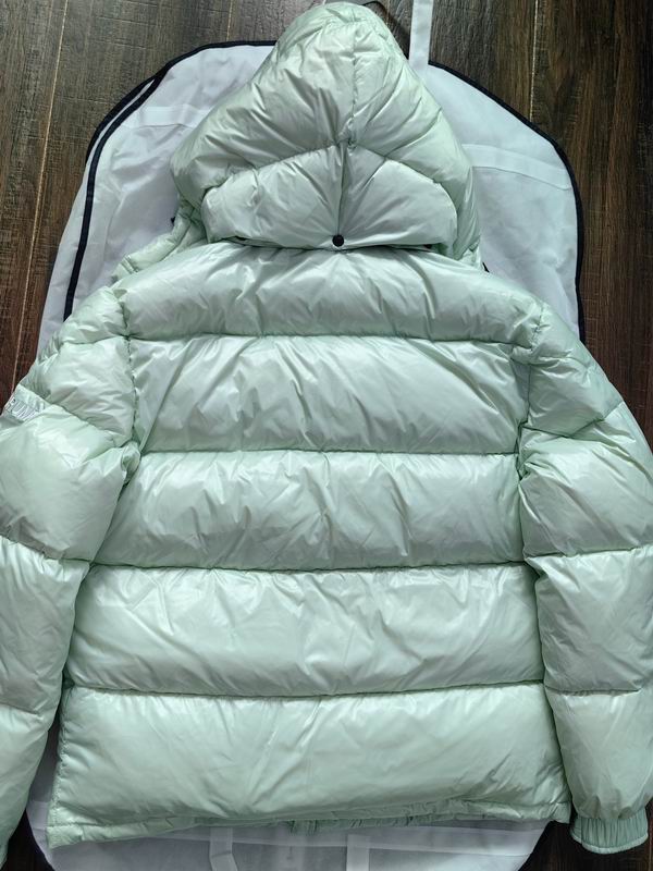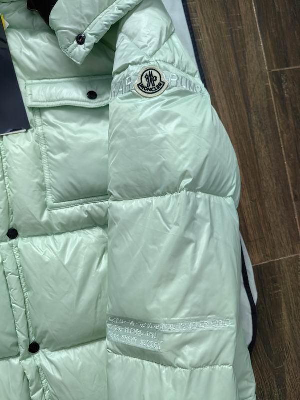 Moncler x FRGMT Karakorum2 Down Puffer Jacket in Mint Green is a striking fusion of high-performance technical wear and avant-garde street style, developed as part of the ongoing collaboration with designer Hiroshi Fujiwara. This specific iteration is presented in a refreshing mint green, a pale, icy pastel that offers a unique and sophisticated visual alternative to standard winter palettes. The jacket is constructed from a signature high-gloss nylon laqué that is both water-repellent and windproof, designed to provide maximum protection in Alpine conditions while maintaining a lightweight feel. The interior is packed with premium down insulation, utilizing a voluminous baffle construction that ensures heat is trapped effectively across the entire torso and arms. Design-centric details include a large, detachable hood with a contrasting dark interior, a dual snap-button front closure, and a series of technical pockets for utility.