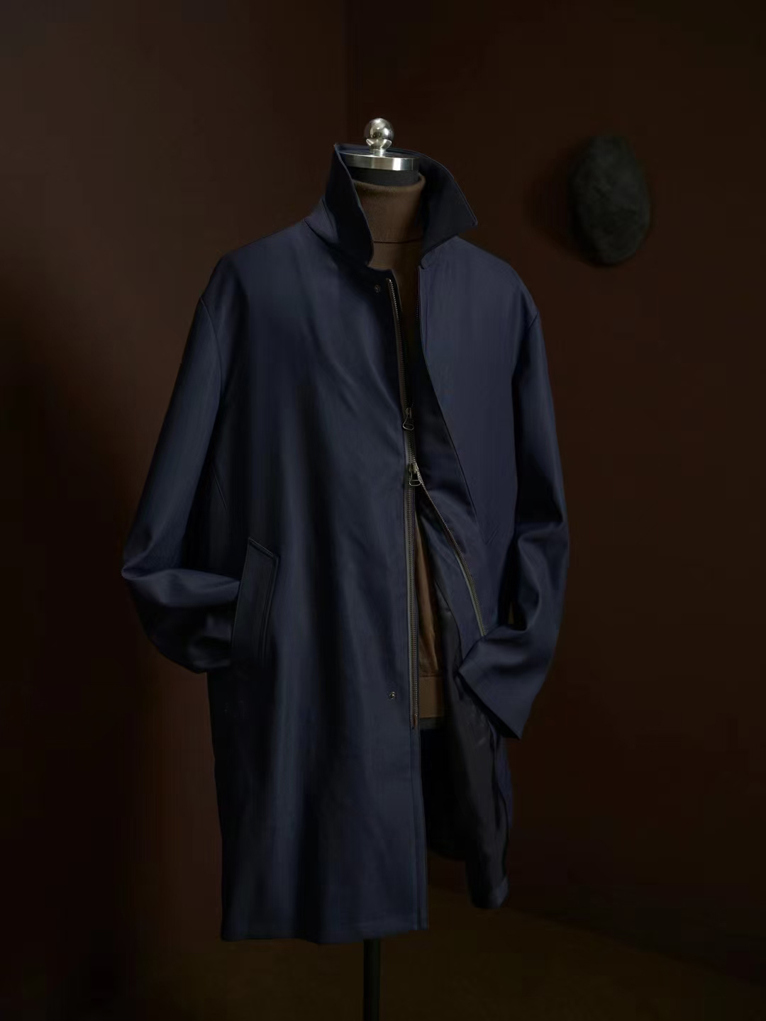 The coat’s design focuses on a minimalist “quiet luxury” aesthetic. It replaces the traditional button-through front with a concealed zipper closure and reinforced snap buttons, creating a sleek, uninterrupted profile that effectively seals out the cold. Functional details are integrated with a clean touch, including streamlined insert pockets and a single rear vent for ease of movement. The interior is finished with a full lining for a smooth drape and added durability. Every element is meticulously executed to provide a sharp, structured silhouette that maintains its form over time.