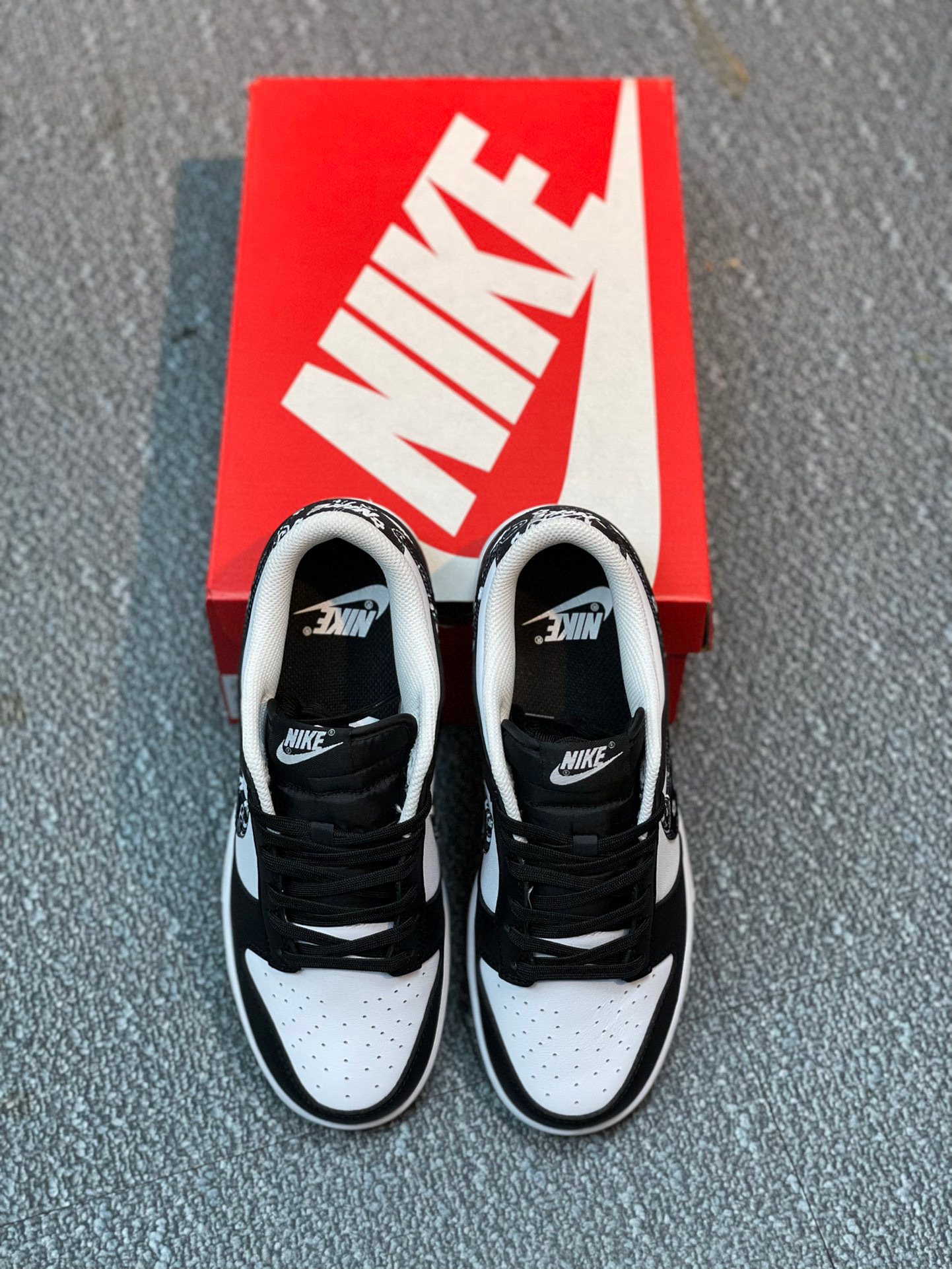 Nike Black/White Low Dunk shoes represent the ultimate essential in modern streetwear, offering a monochromatic look that defines versatility. These shoes are constructed with a crisp white leather base and deep black overlays, creating a high-contrast aesthetic that works with any outfit. Additionally, the smooth leather finish provides a premium feel while ensuring the upper is durable enough for heavy daily use. Furthermore, the clean white midsole is paired with a matching black rubber outsole to maintain the iconic “Panda” color blocking. Consequently, you can wear these for hours in total comfort thanks to the lightweight cushioning provided by the foam midsole. Moreover, the low-profile silhouette allows for maximum ankle mobility, making them ideal for both casual city walking and more active lifestyles. This classic design has become a global staple because it perfectly balances minimalist style with a bold, recognizable presence. Finally, the perforated toe box ensures your feet stay cool and breathable throughout the day. By choosing this pair, you are adding a timeless icon to your collection that never goes out of style.