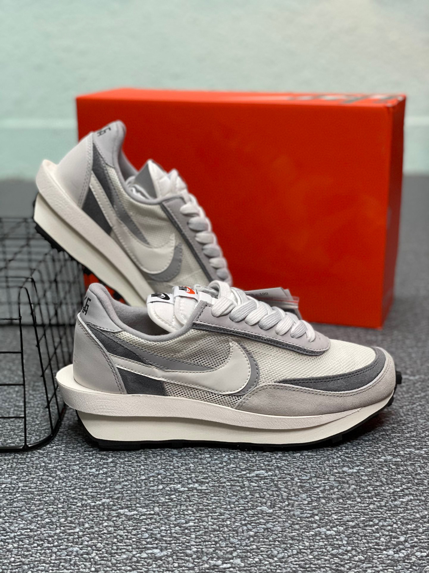 Nike Grey White Waffle Shoe introduces a masterclass in neutral-toned layering and heritage-inspired design. This sophisticated silhouette features a breathable cream mesh base paired with premium grey suede overlays that create a sleek, tonal aesthetic. The signature doubled-up design is present through its dual Swooshes in white and grey, giving the shoe a distinct high-fashion edge. Additionally, the dual tongue system and stacked white midsole provide a chunky, futuristic profile that is highly sought after in modern streetwear.